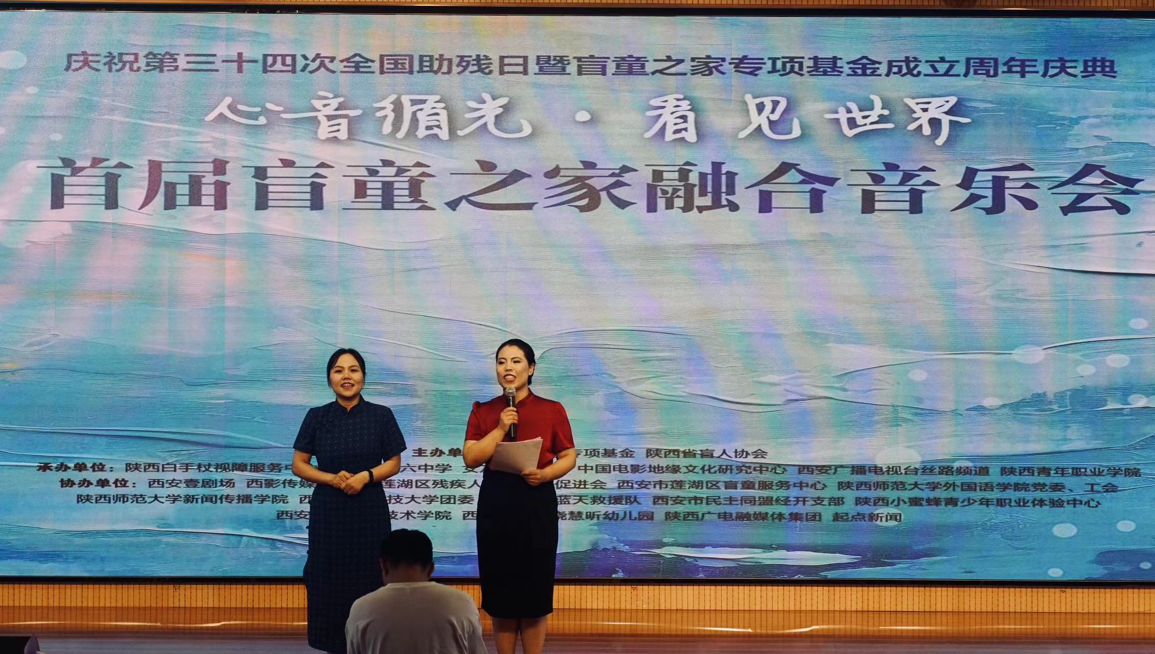 应陕西白手仗视障服务中心与白手仗盲童之家专项基金理事长慧娜的邀请,太阳成集团tyc234cc英语系党支部和公司工会于2024年5月19日参加了在西安市第六中学南校区举办的“心音循光,看见世界”首届盲童之家融合音乐会。英语系党支部书记王艳滨、副书记王立永,大英一支部党支部书记高芬,院工会主席兰军,以及杨金梅、胡哲、陈蕾、罗雅晖、王辉、王艳辉、荣亮、朱丽英等教师,带领研究生及2023级英语优师一班员工志愿者积极参与此次特色主题党日活动。