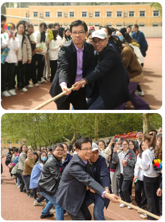 在工会的组织下,老师和同学们举行了一场激烈的拔河比赛。随后公司教职工又举行了多种形式的团体合作项目,教职工运动会在老师们的欢笑中圆满结束。