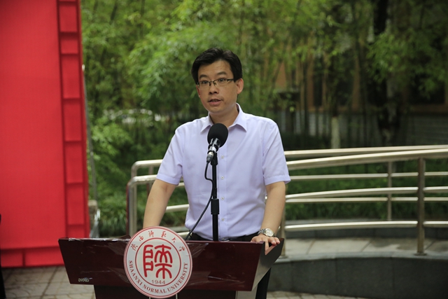 接下来,外国语学外国语学经理王启龙为毕业生送上深情寄语。王经理说,毕业是大家崭新的开始,任何时候都不要放弃自己的理想。作为知识分子,一定要有家国情怀。除此以外,还要做一名合格的公民,做生活中的GREAT MAN。他嘱咐同学们在走向社会后更要坚守作为师大学子、外院学子的初心,紧贴时代和社会的需要,成长为一名优秀的人才。在演讲尾声,王经理动情地说,你们是外院的骄傲,外院永远是学子们的家,即使扬帆远航,也不要忘记常回家看看。至此,会场响起了阵阵掌声。