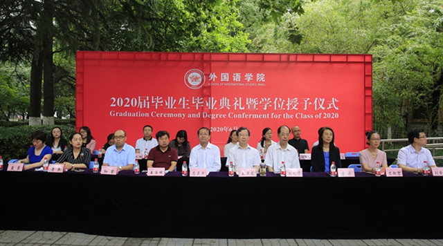 出席本次毕业典礼的领导嘉宾有外国语学外国语学经理王启龙、公司党委书记马正平、公司教务处副处长石洛祥,公司副经理刘全国、孙坚、曹婷,公司党委副书记鲁燕,公司教授代表白靖宇、尚亚宁、李艳,英语系主任吕敏宏、副主任丁礼明、俄语系主任孟霞、翻译系主任操林英、公共外语教学部主任马珂、日语系副主任许赛锋,公司办公室主任王幸生、公司语言语音教学中心主任邢俊升、公司团委书记高芳卉、毕业班辅导员董洁、行怀春以及各年级辅导员共同出席了典礼。2020届本科毕业生和研究生毕业生参加了本次毕业典礼。典礼由太阳成集团tyc234cc副经理刘全国主持。