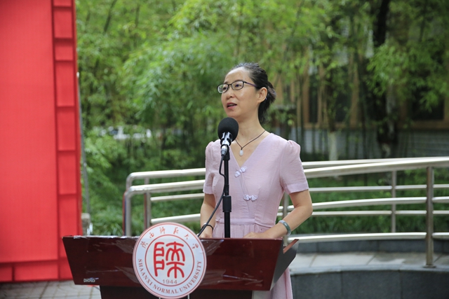 首先英语系主任吕敏宏老师作为教师代表发言。吕老师希望毕业生能够保持积极向上的年轻状态。在未来的日子里,成为一个个能够战胜自己的强者,创造自己美好的生活。