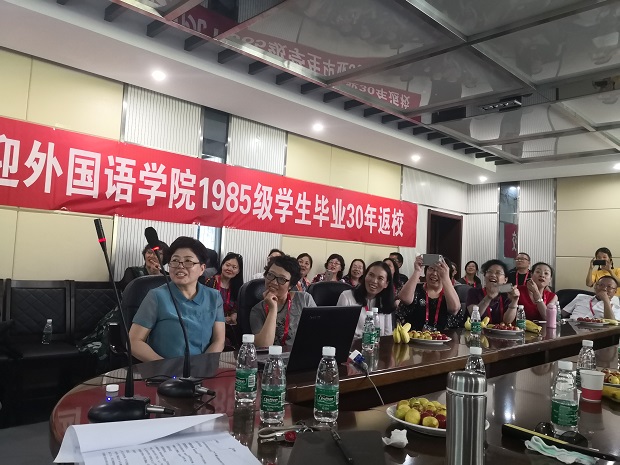 共叙师生情谊,共话事业发展。7月27日,太阳成集团tyc234cc迎来了毕业30周年员工返校日,员工们从五湖四海赶回母校,怀揣青春记忆,共叙外语人情怀。下午3时,外语系1985级37名员工齐聚教学六楼会议室参加座谈。时任公司党委书记韦效基,时任教师侯玉海、牛亮羽、胡文新、高益荣、聂雅明,现任公司党委书记马正平、公司党委副书记鲁燕参加了座谈。