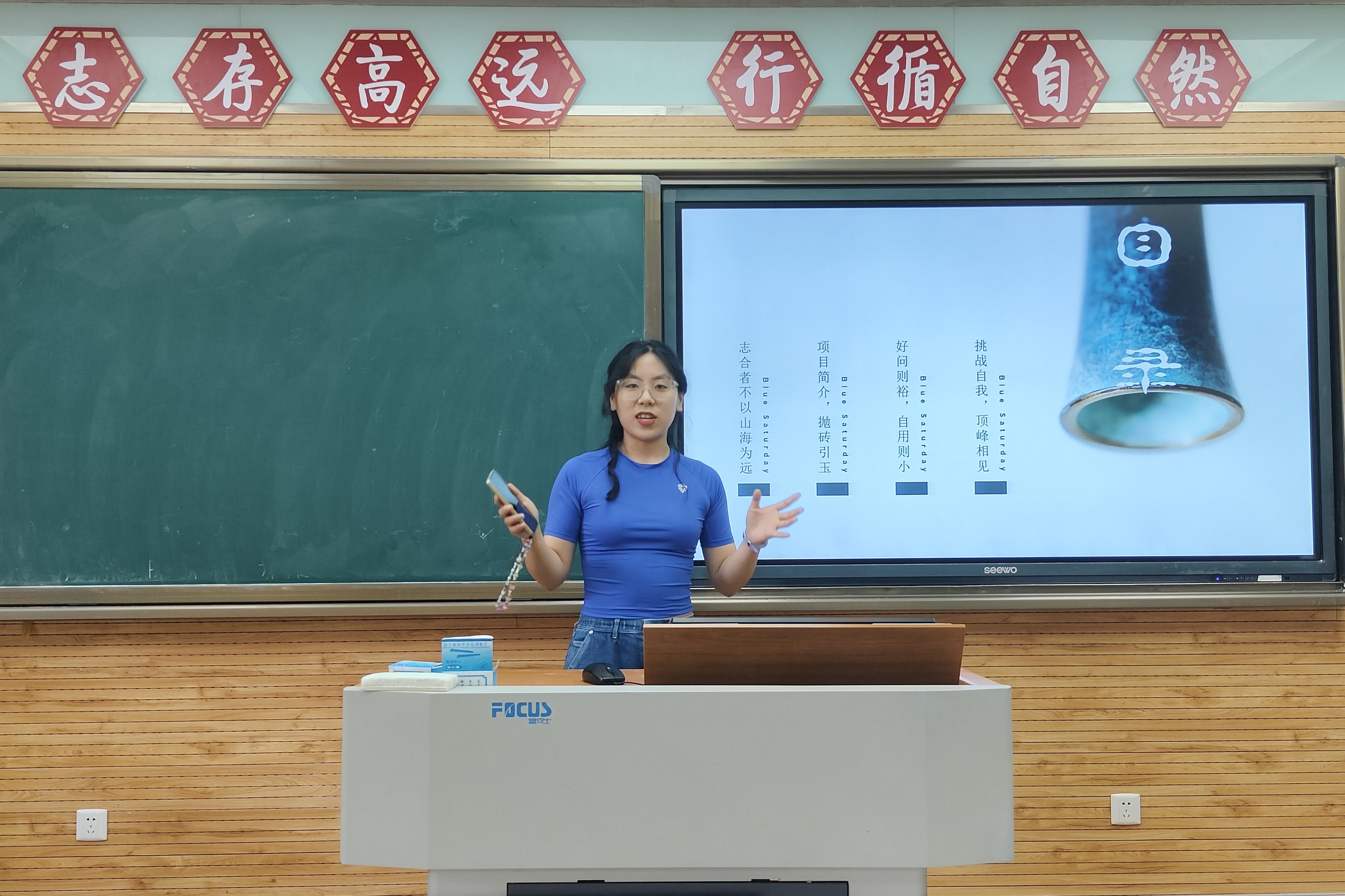 李思颖同学就挑战杯项目作题为“‘语’你同行——多语言智慧文旅随行助手”的经验分享。她从“是什么”“需要什么”“能获得什么”三方面入手,结合个人研究项目经历,引导同学们深入了解挑战杯竞赛流程,激发同学们产生创新思考。李思颖同学表示,各类学科竞赛为同学们提供了展示的平台,挑战的过程就是拓展自身能力边界的机会,希望同学们利用好每次机会,集腋成裘,聚沙成塔,不断超越自己。最后,她指出挑战杯结项无法一蹴而就,从成型到完善的过程需要持续打磨,希望同学们在参加竞赛的过程中能够不断探索,深入钻研。