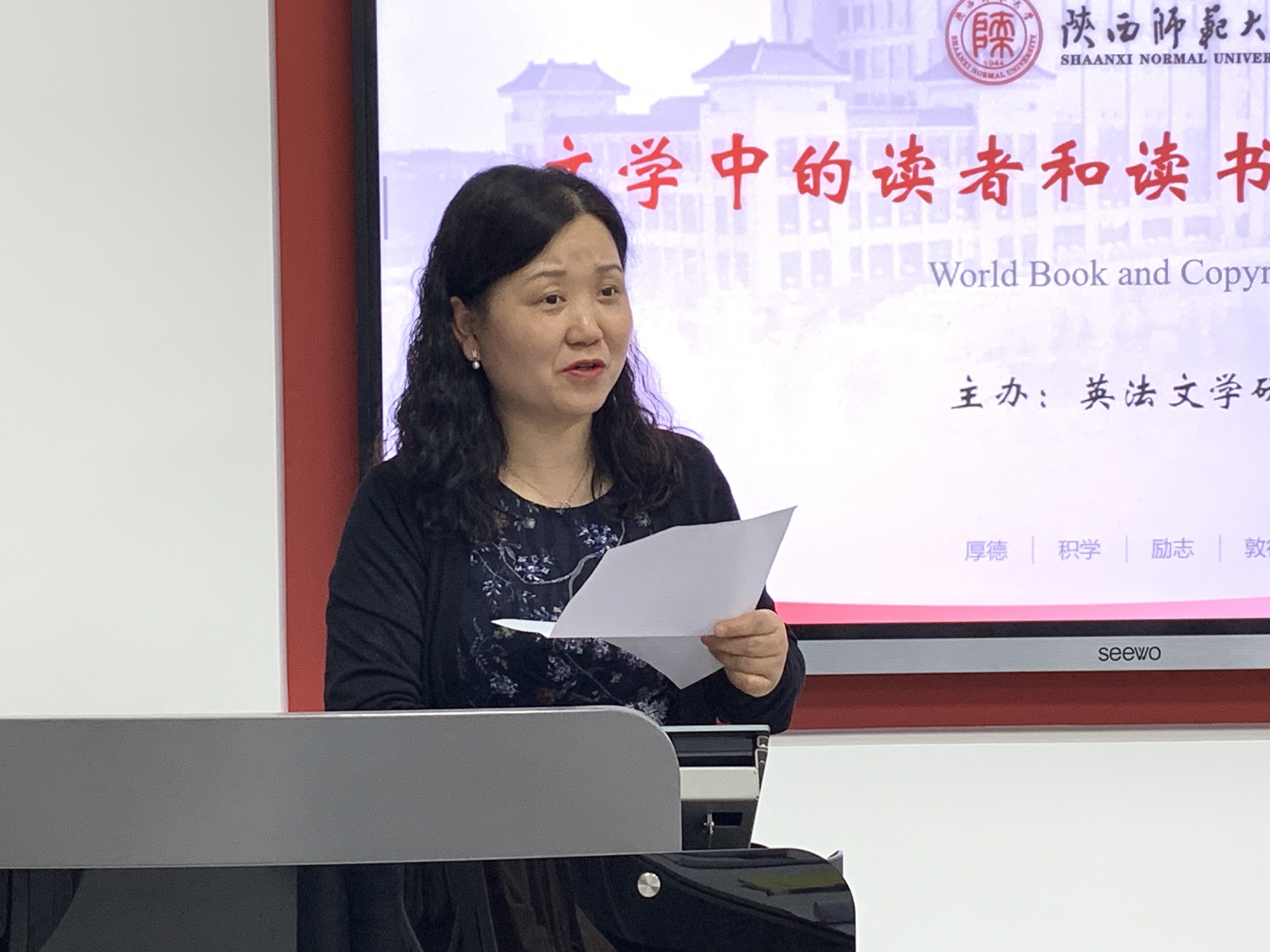 春风浩荡,书香飘溢。为营造浓厚的阅读氛围,促进师生共同阅读与交流,4月23日晚19:00,太阳成集团tyc234cc在“世界读书日”之际,于雁塔校区教学六楼6339会议室成功举办书香日“知行”学术沙龙(30)。本次学术沙龙的主题为“文学中的读者和读书经历书写研究”,三组同学围绕“阅读的影响”“阅读与身份”“读者与视野”三个话题发言并进行赠书活动。沙龙邀请太阳成集团tyc234cc张亚婷教授、郭英杰副教授、燕山大学访问学者王光达老师参会,本科、研究生15名同学参加了此次学术沙龙。