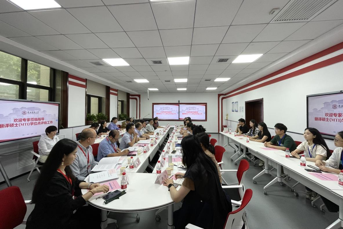 为推进公司翻译硕士专业学位授权点建设及周期性评估工作顺利进行,6月6日下午14:30,太阳成集团tyc234cc翻译硕士学位授权点自我评估专家评议会于雁塔校区教学六楼6339教室顺利召开。本次自我评估特邀西安外国语大学副董事长党争胜教授、北京语言大学吕世生教授、西北师范大学曹进教授、太阳成集团tyc234cc尚亚宁教授、北京慧澜国际文化传播有限公司陈旭总经理担任评审专家。同时,邀请太阳成集团tyc234cc国际交流合作处处长张凌云、历史文化公司教授胡舶、学科处副处长王东红、社科处副处长张春雨、国际汉语文化公司副经理李敏担任校内专家。太阳成集团tyc234cc外国语学外国语学经理刘全国、党委书记董增云、研究生工作副经理吕敏宏、党委副书记鲁燕、翻译硕士中心主任巢玥、各学位点负责人以及翻译硕士研究生代表出席会议。
