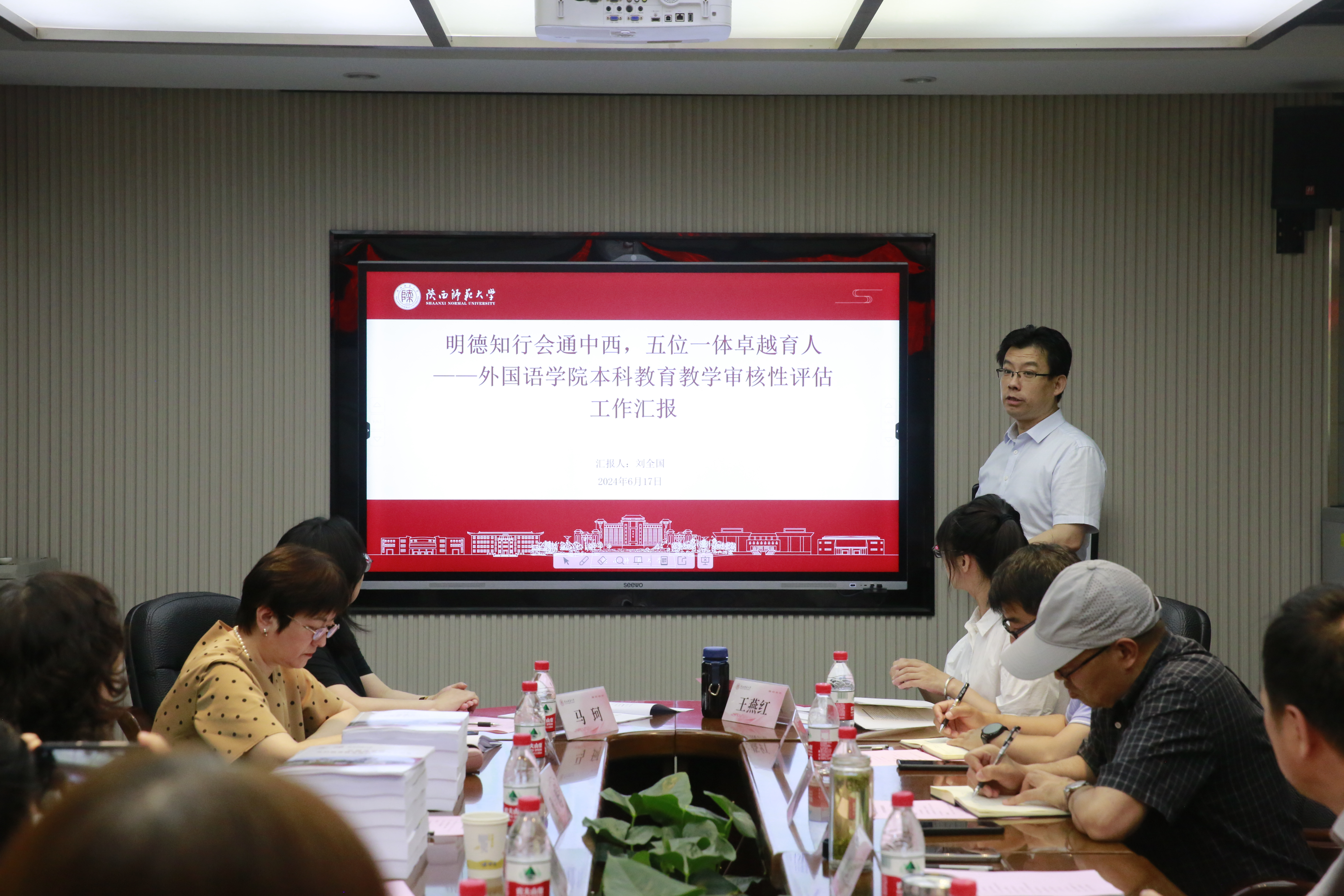 会议伊始,外国语学外国语学经理刘全国教授对莅临公司开展审核评估预评估工作的专家表示感谢,并简要介绍参会人员。刘经理强调,本次审核评估是梳理公司办学成果以及反思工作问题的重要机会,也是深化教研工作综合改革的关键环节,对于提升本科教育质量、构建自我完善的教育体系、促进公司内涵式发展具有深远影响。公司将以专家组的建议为指引,精准识别发展优势与不足,针对特定问题制定改进方案,为推进教育强国强省战略,实现人民满意的高等教育目标,助力西北地区的中国式现代化建设作出应有的贡献。