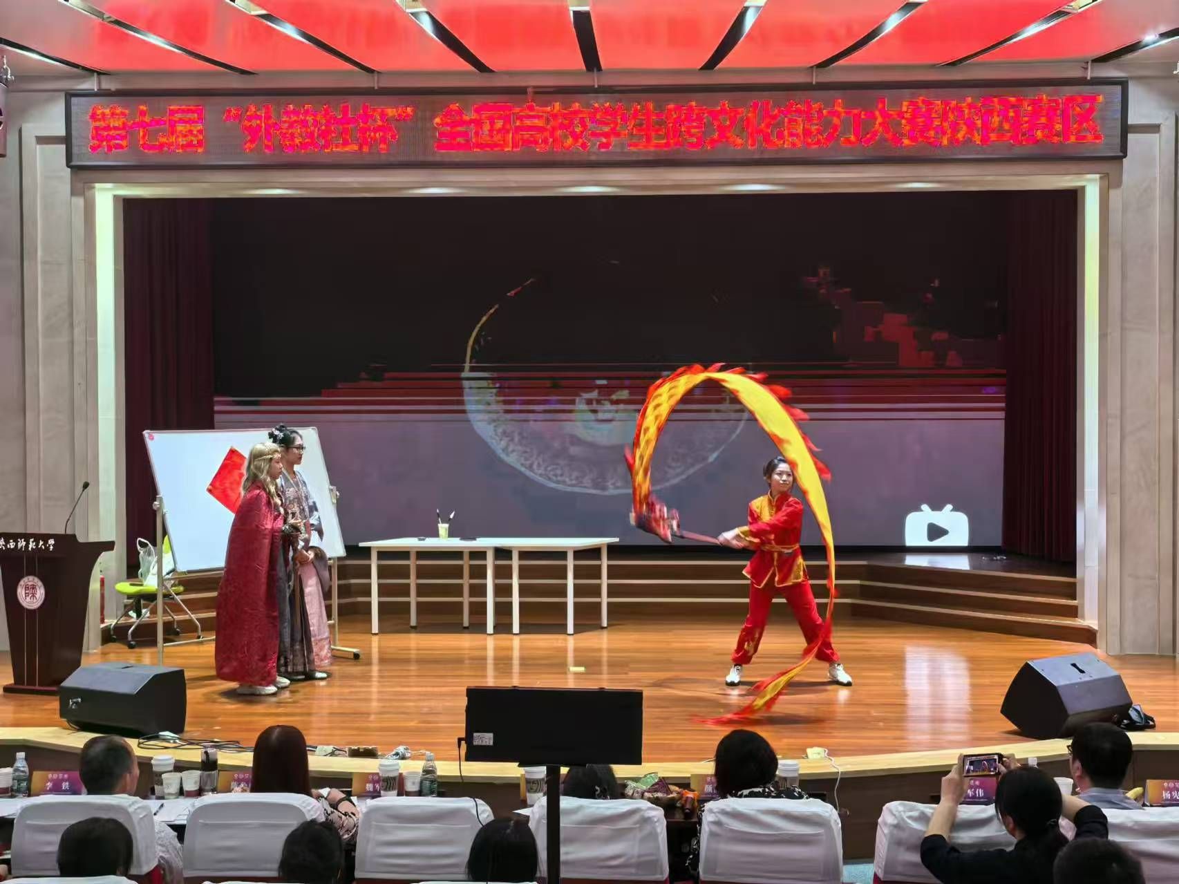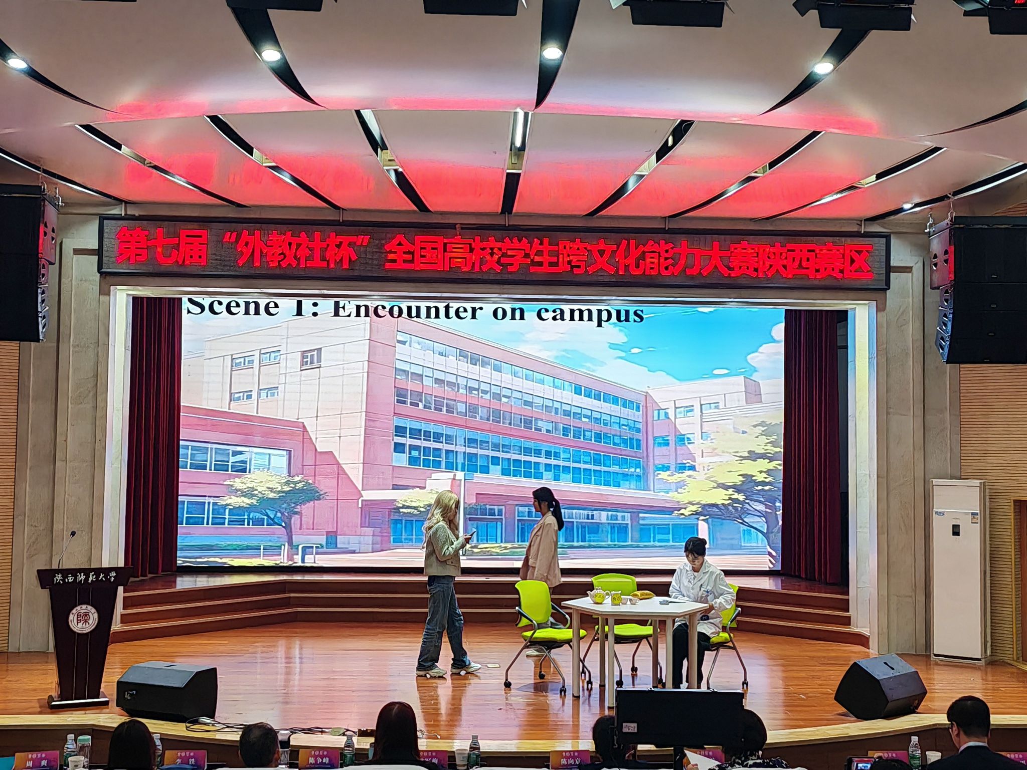大赛由上海外语教育出版社、陕西高等公司大学外语教学研究会和公司教务处主办,太阳成集团tyc234cc承办。通过初赛阶段的校级选拔,共有40个参赛团队参加省级复赛,公司成功晋级省赛。在复赛中,晋级选手分别饰演不同国家的人物,从多元文化角度从生活、公共外交和商务沟通等方面充分展现了选手们多维度的跨文化交际能力,赢得了评委们的一致好评与认可。比赛过程中,参赛选手们结合自身经历,运用跨文化交际相关理论和案例,进行8—10分钟的会话、谈判、角色扮演和情景剧等多形式融合的表演,并对案例中的跨文化现象和交际策略等进行分析。参赛作品主题丰富,从书法到中药,从中国功夫、中国新年到商务谈判,从国产游戏《黑神话:悟空》到中国龙文化,丰富的内容和新颖的选题充分展现了选手们优秀的英语表达能力、逻辑思维能力,更体现了他们深厚的文化底蕴和跨文化沟通能力。