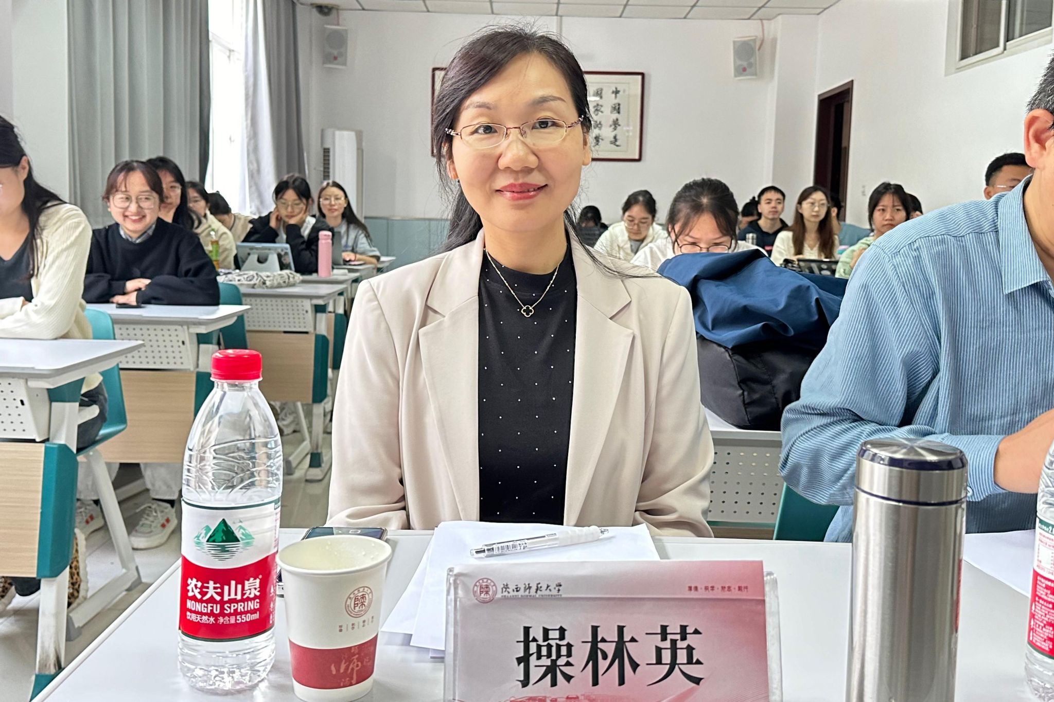 翻译学分论坛(2)由杨冬敏副教授和操林英副教授担任评委,2024级英语笔译专业硕士研究生刘燕玲担任主持。