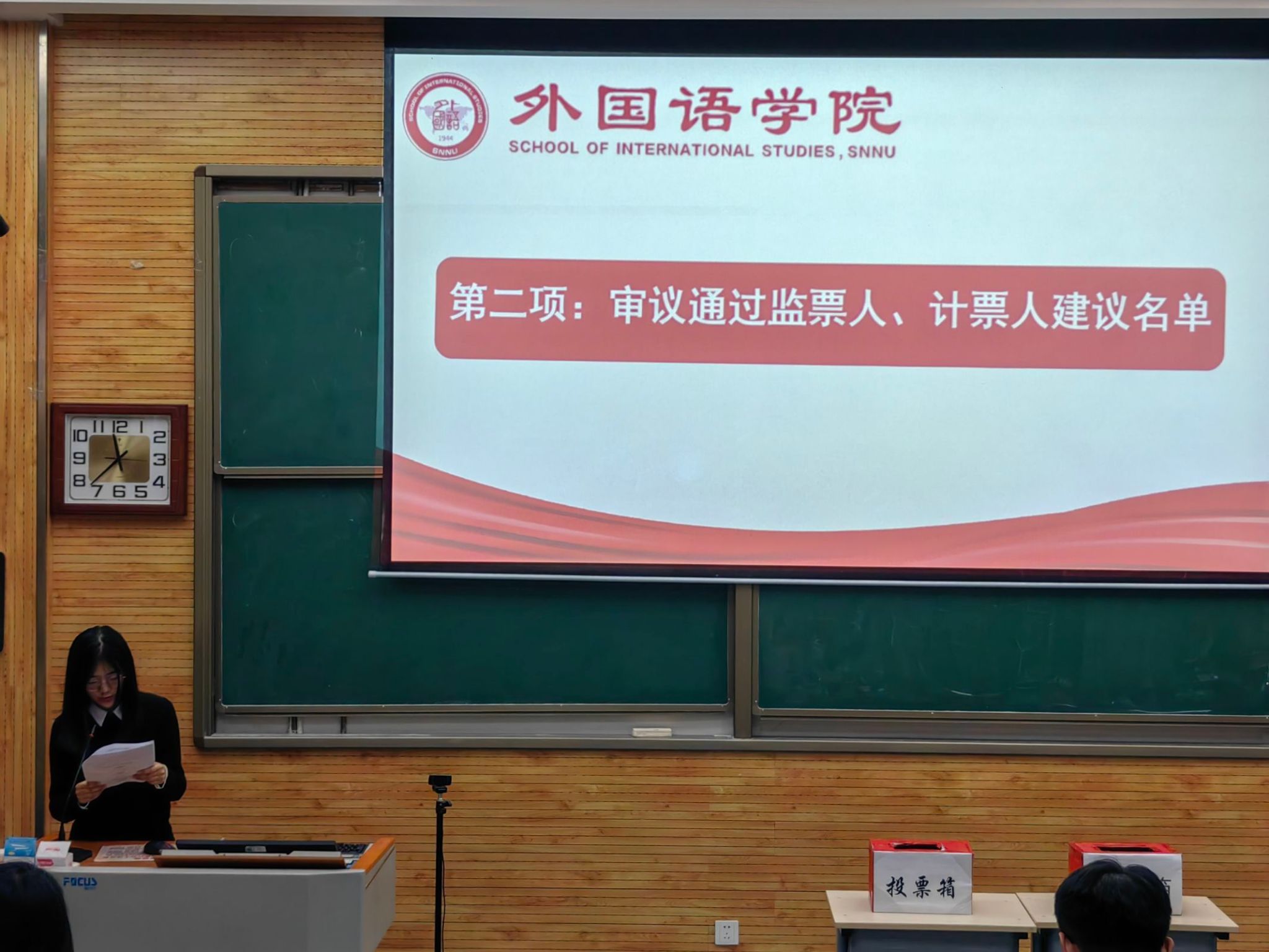 大会进行正式选举,由全体员工代表共同进行投票,选举员工、研究生委员会委员、校学代会代表和主席团成员。