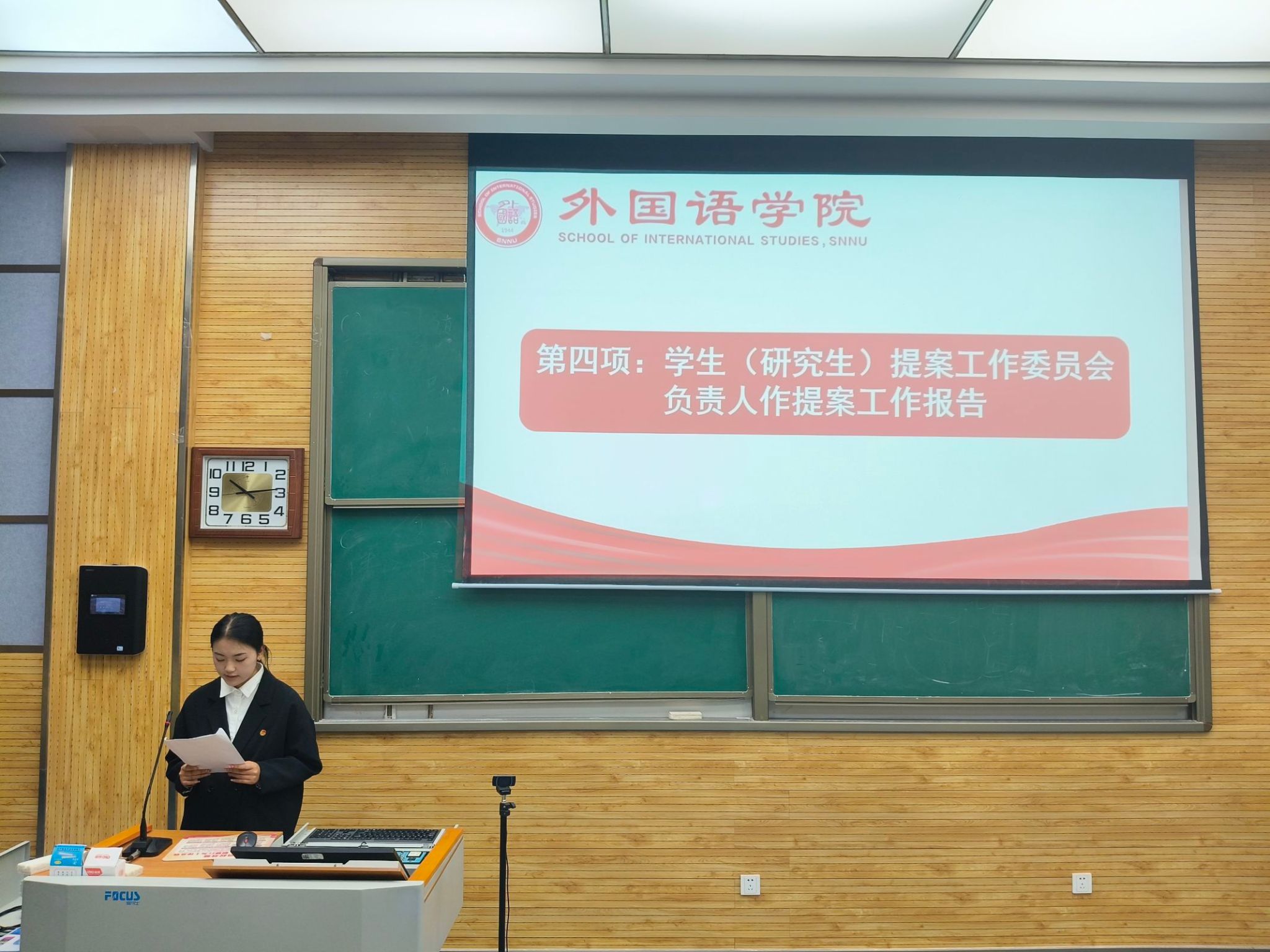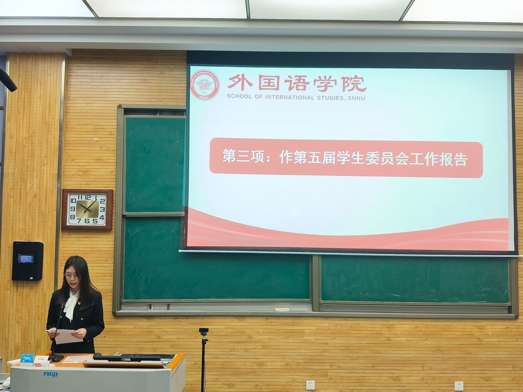陆丁茗代表第四届员工委员会作工作报告,李雨婷代表第四届研究生委员会作工作报告并对上一年度的员工工作进行总结反思。