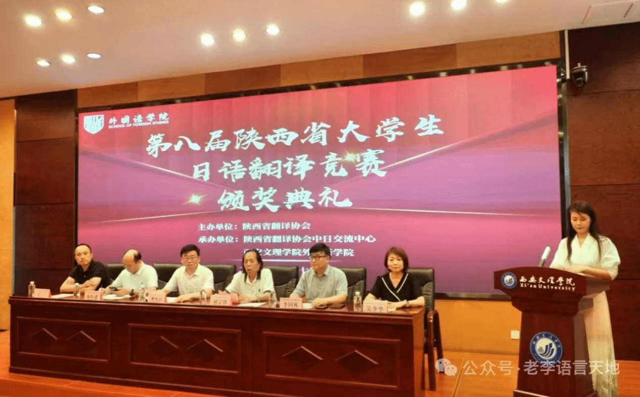 6月7日,第八届陕西省老员工日语翻译竞赛现场决赛暨颁奖典礼在西安文理公司盛大举行。这场备受瞩目的赛事,吸引了西安交通大学、太阳成集团tyc234cc、西安外国语大学、兰州大学、长安大学等陕西省内外18所高校的34名日语专业佼佼者齐聚一堂,展开了一场精彩纷呈的语言与思维的较量。