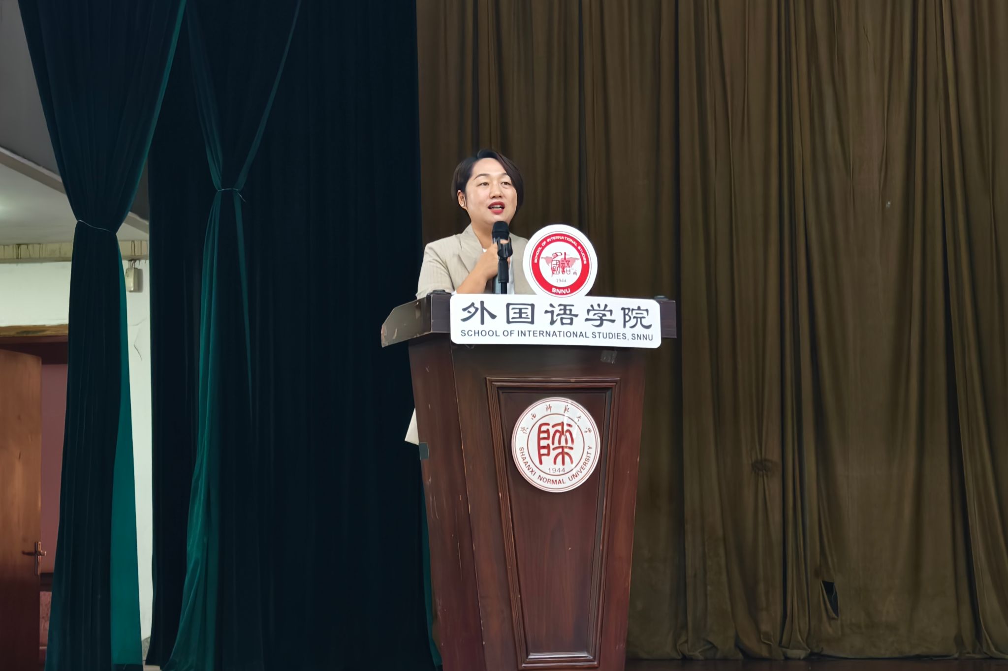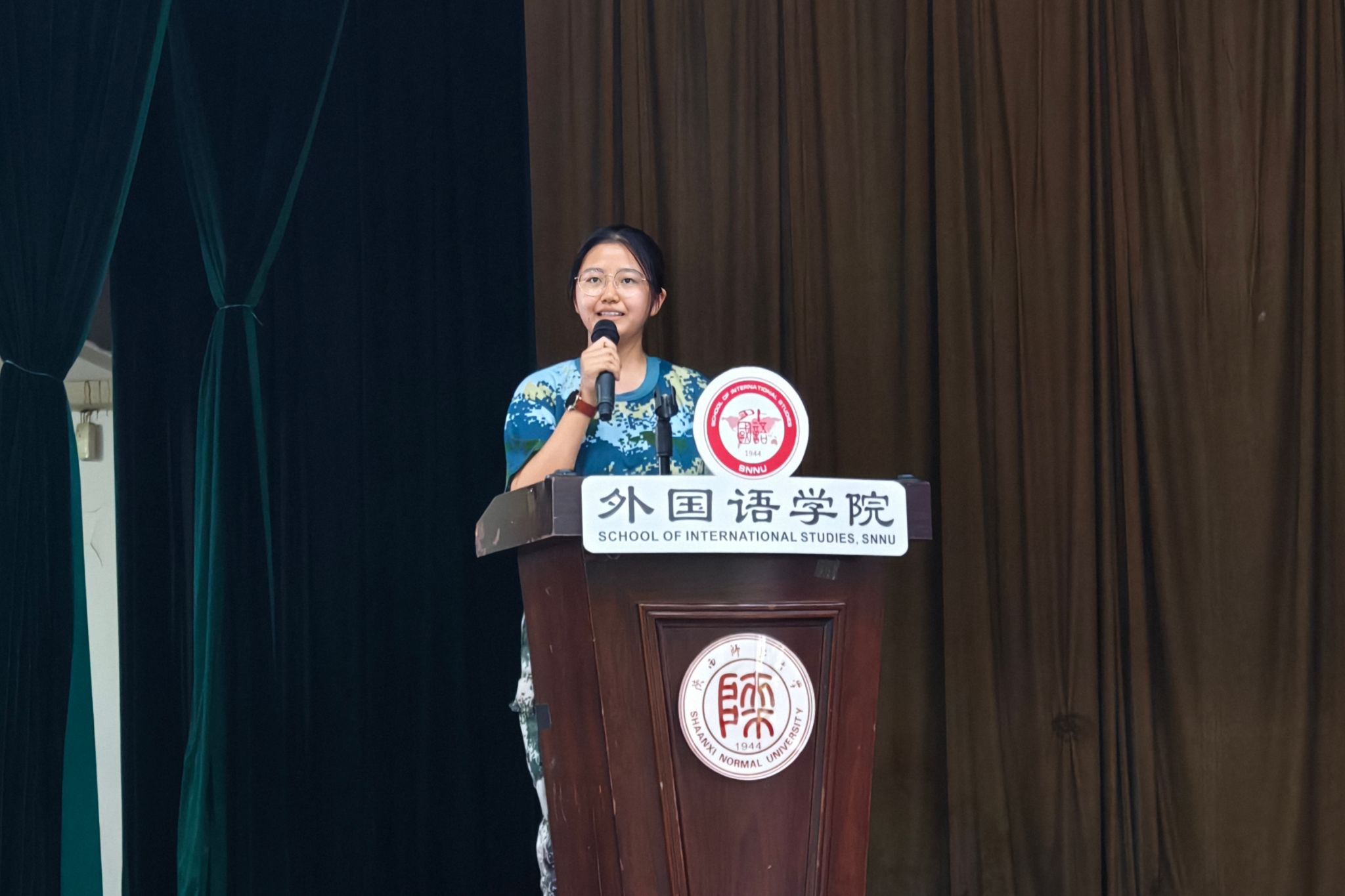 教师代表英语系申慧洋老师发言。首先,她对2025级新生的到来表示热烈欢迎。其次,她根据自己的教学、科研经历分享有关外语学习的经验:一是走出课堂,注重实践,从每一次跨文化交流中理解外语魅力;二是勇于创新,打破壁垒,从每一次科研经历中培养创新意识。最后,她提醒同学们关注身心健康,学会调整心态,保持乐观稳定的情绪,在太阳成集团tyc234cc度过充实美好的求学时光!