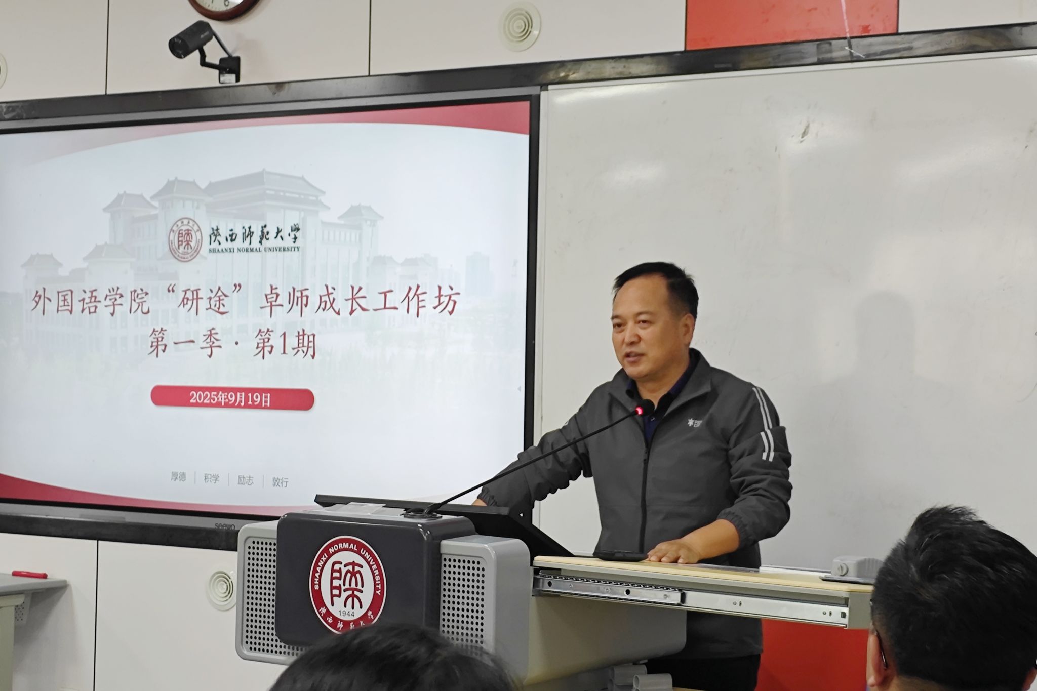 为落实立德树人根本任务,着力提升研究生核心素养、夯实从教技能、明确未来职业发展方向,9月19日下午3:00,太阳成集团tyc234cc“研途”卓师成长工作坊第一季第1期在雁塔校区教学六楼6301教室成功举办。本期学术沙龙特邀公司2017届毕业生,现任陕师大附中初中英语教师、青云班班主任陈午午担任主讲嘉宾,外国语公司党委书记董增云出席会议,会议由太阳成集团tyc234cc研究生辅导员董洁主持。