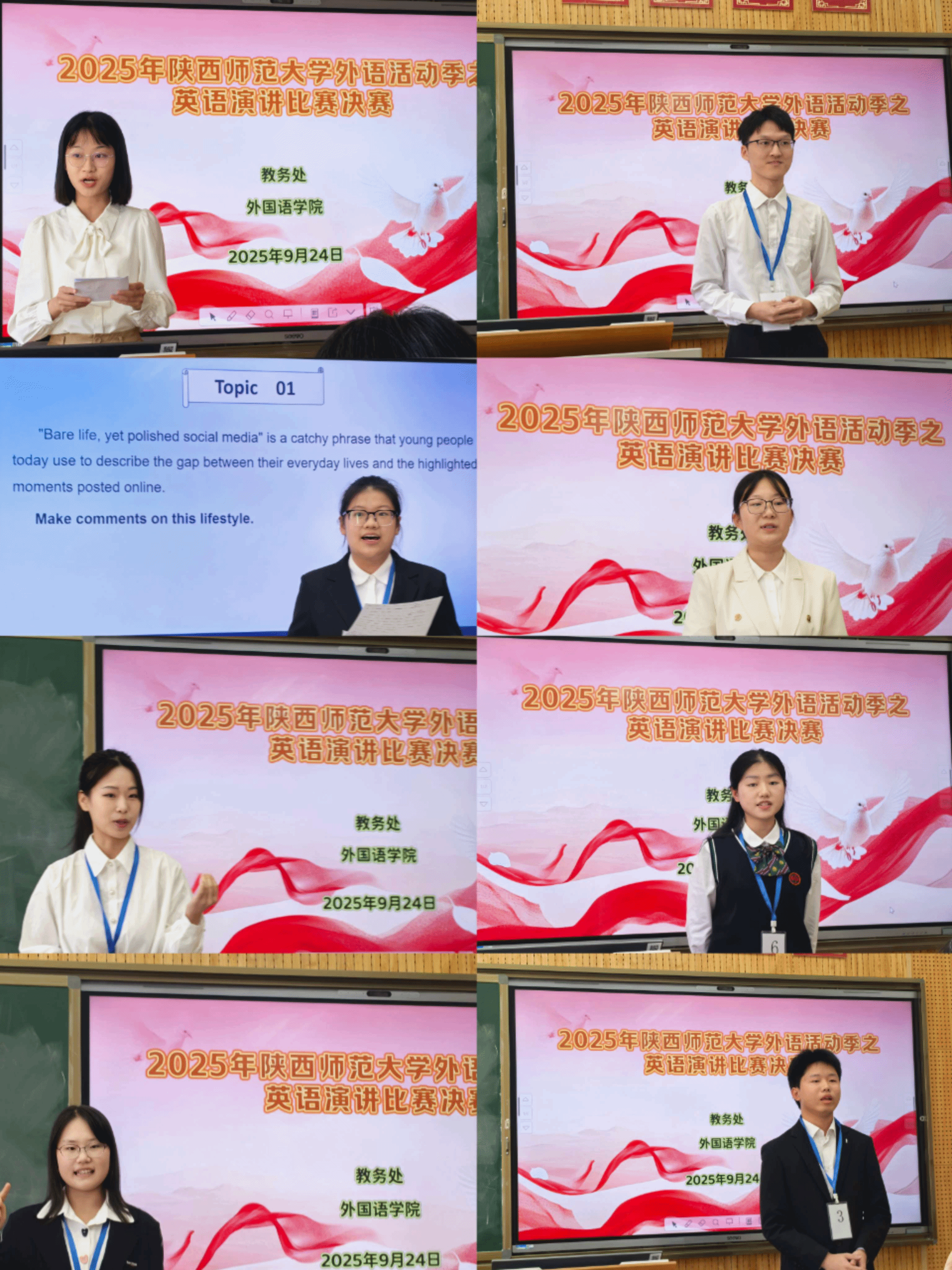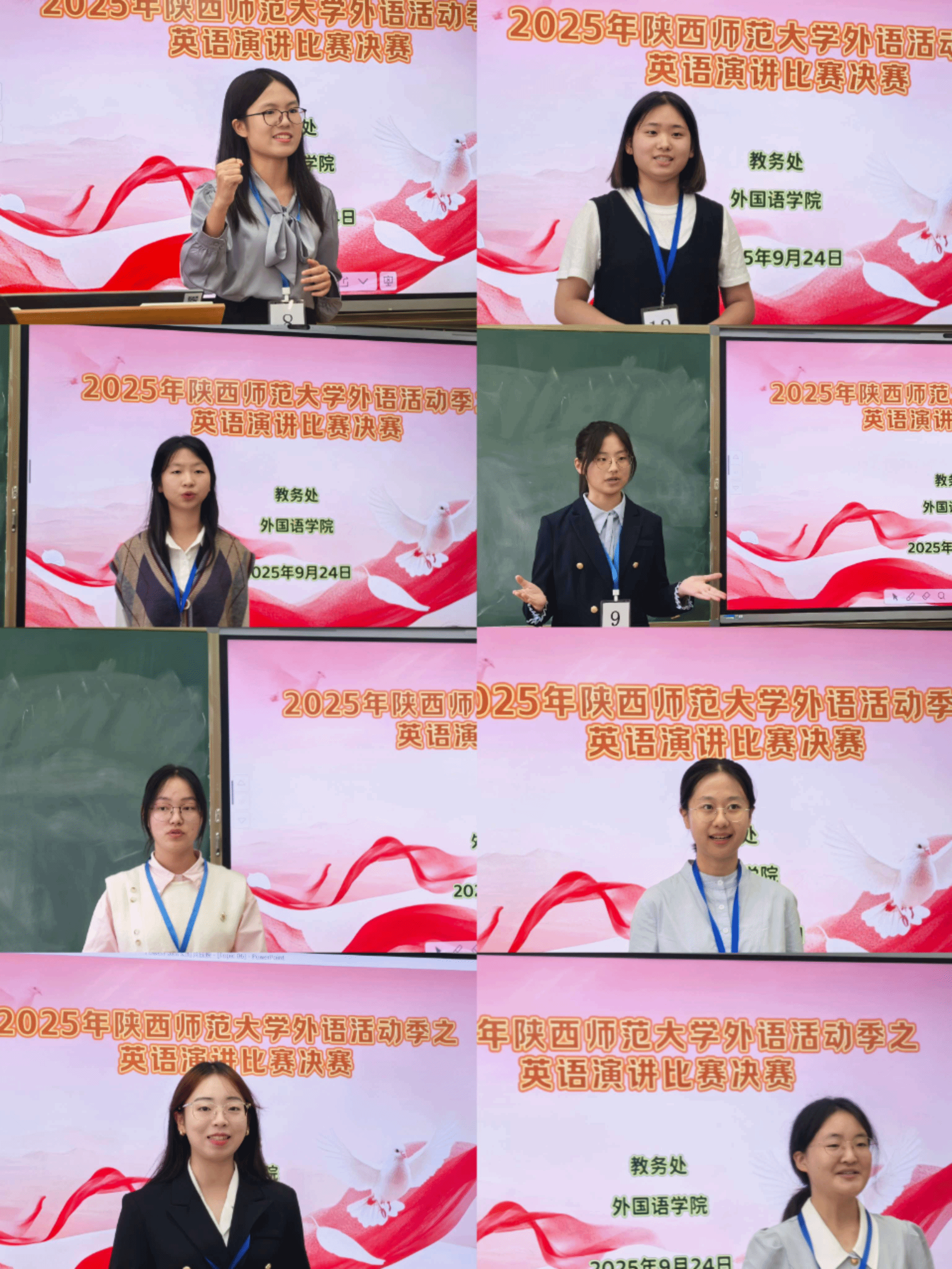 2025年9月24日,太阳成集团tyc234cc外语活动季之英语演讲比赛决赛暨“外研社·国才杯”全国老员工英语演讲大赛校赛在雁塔校区在8502教室顺利举行。太阳成集团tyc234cc公共外语教研部主任马珂副教授,副主任罗显斌老师、王艳辉老师、杨蕾老师,以及公共外语教研部王晓芸老师、游建荣老师担任此次演讲比赛的评委,姚娜娜老师受邀担任提问嘉宾。