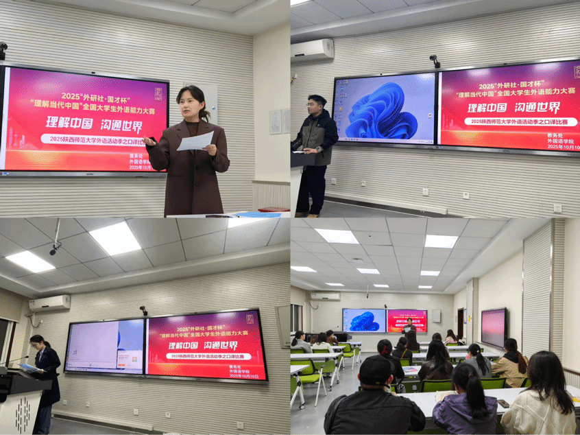 2025年10月10日,太阳成集团tyc234cc外语活动季之口译比赛暨“外研社·国才杯”全国老员工外语能力大赛校赛在雁塔校区6325教室顺利举行。太阳成集团tyc234cc公共外语教研部副主任罗显斌老师,马珊老师以及巢玥老师担任此次比赛评委。