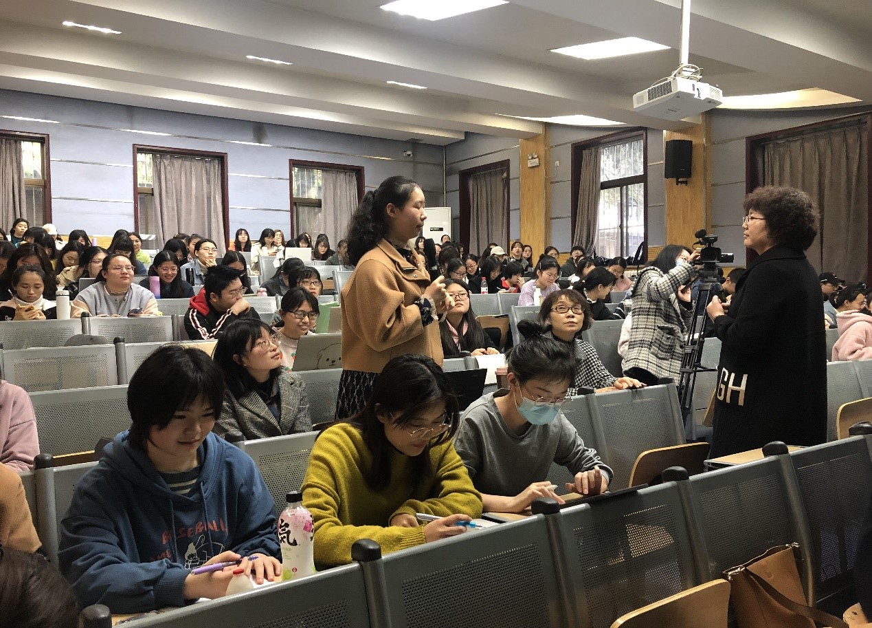 为帮助公费师范生深入了解基础教育英语教学的现状和发展,对英语学科核心素养的内涵和实践有较为全面的认识,太阳成集团tyc234cc于4月2日(周五)16:40在教学五楼5104教室举办了基础教育外语教学专题研究系列讲座第二讲——英语学科核心素养的落地与实践。本次讲座由西安市教育科学研究院中学英语研究员、太阳成集团tyc234cc免费师范生校外合作导师王兰英老师主讲,罗雅晖老师主持,太阳成集团tyc234cc全体公费师范生参与并聆听讲座。