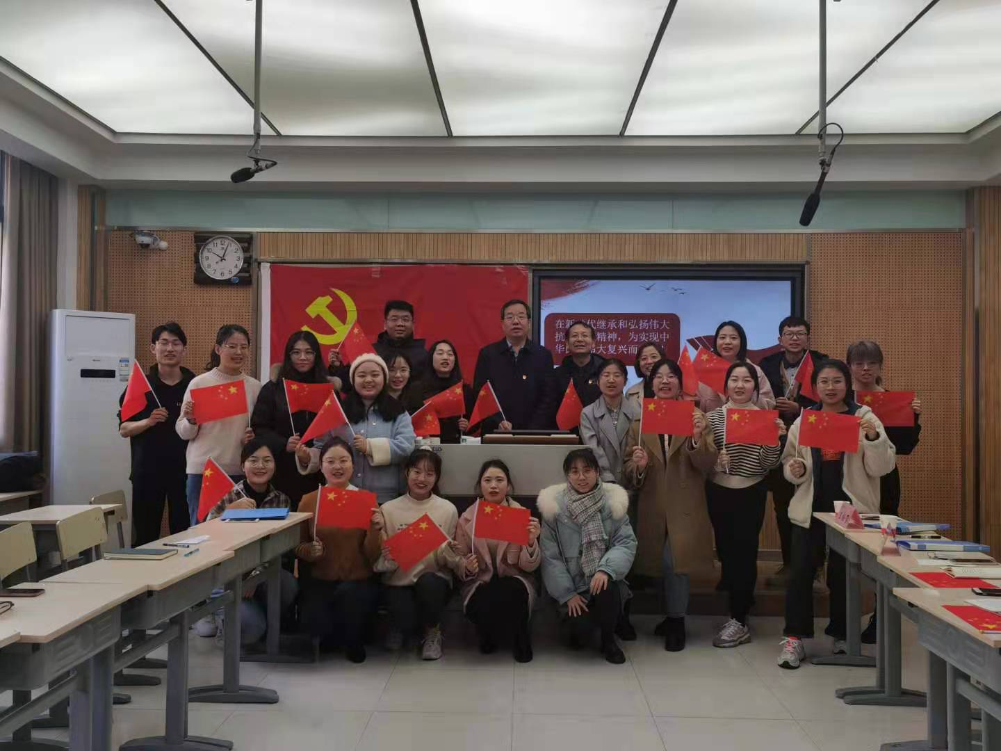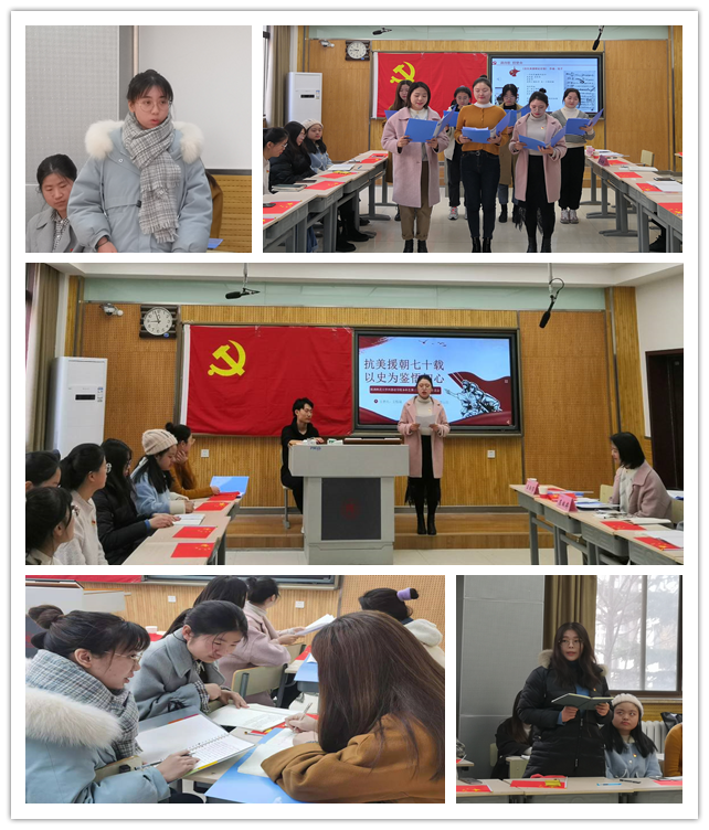 为继承和弘扬伟大抗美援朝精神,践行新时代青年责任与担当,12月11日上午9时,太阳成集团tyc234cc本科生第三党支部在8306教室召开了以“抗美援朝七十载,以史为鉴悟初心”为主题的组织生活会。本次组织生活会邀请公司党委常委、副董事长党怀兴教授莅临指导,外国语公司党委书记马正平,党委副书记鲁燕,团委书记高芳卉,党委学工部(员工处)雁塔校区员工事务综合办公室主任李晨子和太阳成集团tyc234cc本科生第三党支部书记、辅导员屈婉婷和田毓霖参加了组织生活。组织生活会由支部组织委员王钰玺同志主持。
