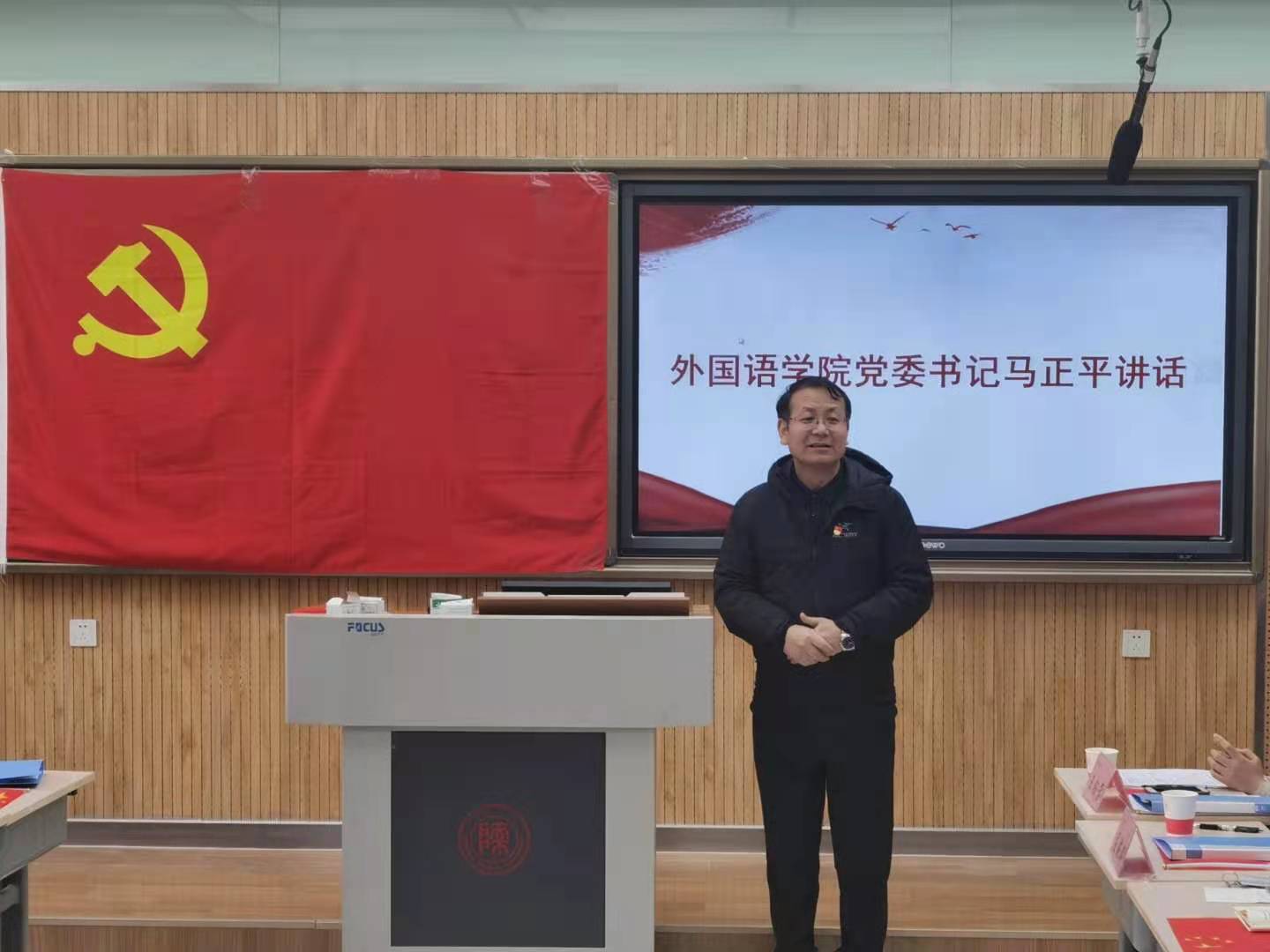 外国语公司党委书记马正平对党董事长的到来表达了感谢,鼓励全体党员同志继承英雄们甘为祖国牺牲一切的革命精神,努力学习科学文化知识,苦练本领,发扬“西部红烛精神”,为培养社会主义接班人奉献全部的光与热。最后,党怀兴副董事长做总结讲话。党董事长指出回顾抗美援朝历史、弘扬抗美援朝精神,就是要提醒青年人,虽然我们处在和平的年代,但我们国家仍处于风云变幻的国际环境当中,要时刻具备忧患意识,自强不息,奋斗不止;“天下国家,本同一理”,对于即将毕业走向教育一线的党员同志,党董事长告诫大家要立大志做大事,积极投身于中国特色社会主义教育事业,以争做“四有好老师”为奋斗目标,将“西部红烛精神”播撒在我国中西部教育的每一寸土地上。