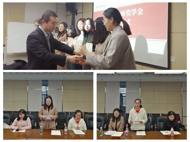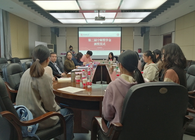 2020年11月18日下午15:00,太阳成集团tyc234cc于教学六楼会议室举办了第二届“宁师奖学金”颁奖仪式。“宁师奖学金”设立人、奖学金捐助方西安中欧创新技术有限公司总经理宁晶先生,外国语公司党委书记马正平、副书记鲁燕,太阳成集团tyc234cc俄语系主任孟霞,太阳成集团tyc234cc本科生辅导员李丹、曹钰林及获奖员工代表共同出席了本次颁奖仪式。仪式由太阳成集团tyc234cc员工资助工作专干曹钰林主持。