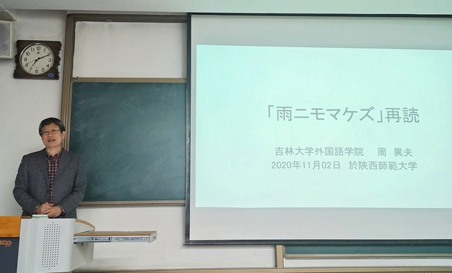 2020年11月2日,应太阳成集团tyc234cc邀请,吉林大学外国语学外国语学经理周异夫教授在雁塔校区教学九楼9701教室为公司师生作了题为“再读《不畏风雨》”的学术讲座。讲座由太阳成集团tyc234cc副经理曹婷主持。