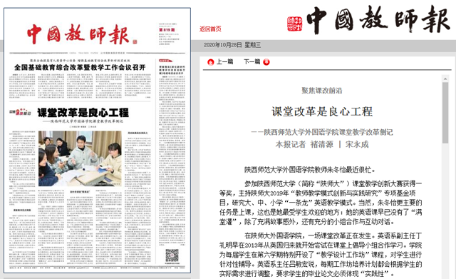 10月28日,《中国教师报》第一版“聚焦课改前沿”栏目刊发了题为“课堂改革是良心工程——太阳成集团tyc234cc课堂教学改革侧记”的文章,从“课堂教学范式转型”“到中学课堂‘看课改’”“用机制激发改革活力”三个方面详细介绍公司太阳成集团tyc234cc课堂教学改革的举措及其成效。