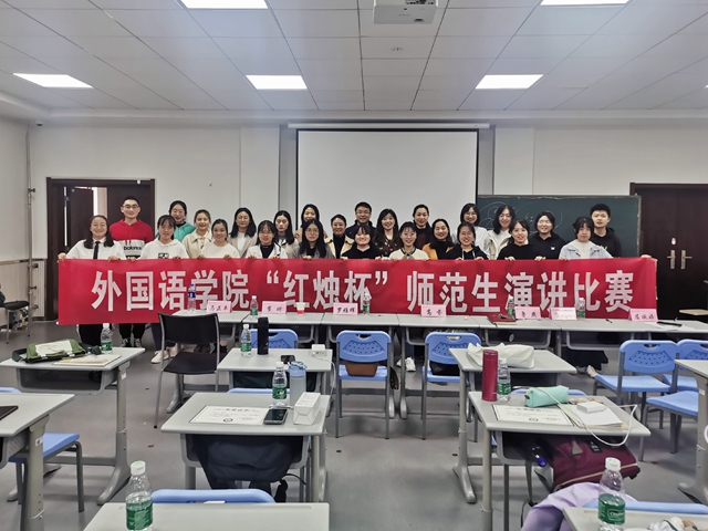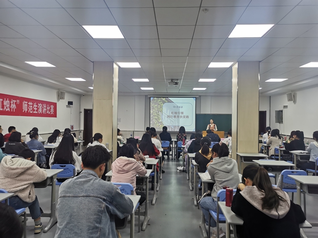 10月28日下午14点半至,2019级师范生“红烛杯”演讲比赛于教学六楼301教室举行。外国语公司党委书记马正平,党委副书记鲁燕,教师代表高芬副教授、丁礼明老师、崔琳老师、罗雅晖老师,辅导员屈婉婷以及2019级师范员工代表70余人共同聆听了此次演讲比赛。