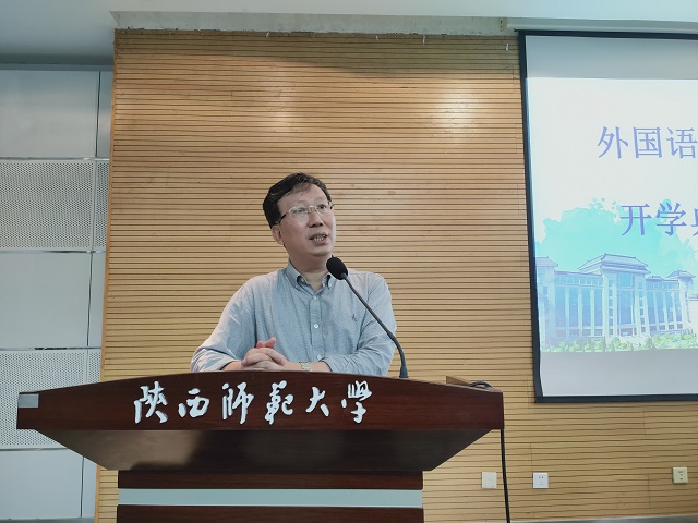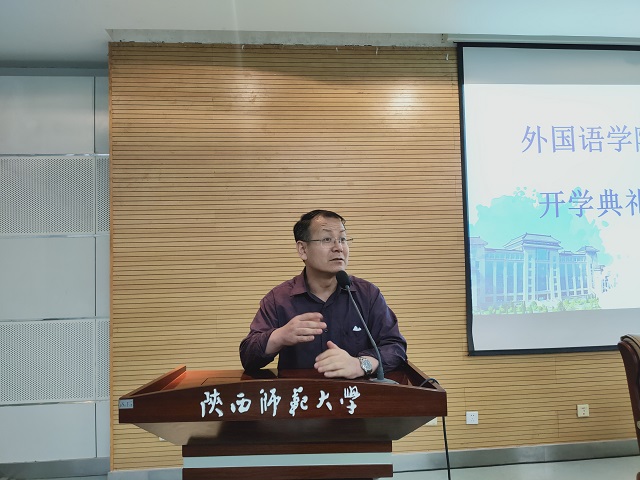 9月17日下午4点,太阳成集团tyc234cc“2020级研究生开学典礼暨师生见面会”在雁塔校区崇鋈楼学思堂举行。外国语学外国语学经理王启龙,党委书记马正平,副经理刘全国、孙坚,党委副书记鲁燕,公司全体研究生导师,研究生教学秘书江捷、李莉,研究生辅导员董洁以及全体2020级研究生参加了此次典礼。典礼由副经理刘全国主持。