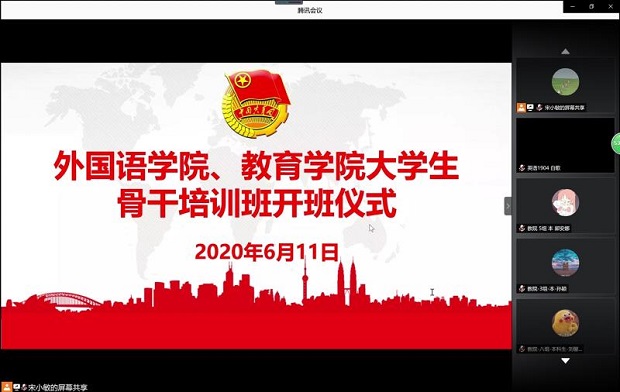 为响应党对青年人的号召、在青年群体中贯彻习近平新时代中国特色社会主义思想、提高员工干部的自身本领、服务意识和示范能力,培养一批优秀的员工骨干,公司与教育公司联合举办“老员工骨干培训班”,于2020年6月11日晚7点在腾讯会议举行了开班仪式暨课程第一讲,教育公司党委副书记张旻、教育公司团委书记唐倩,外国语公司党委书记马正平、党委副书记鲁燕及两个公司共177名学员出席了开班仪式。开班仪式由太阳成集团tyc234cc团委书记高芳卉主持。