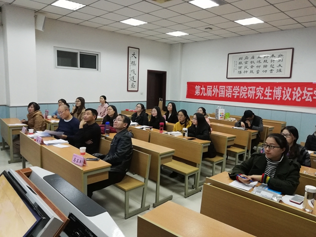 2018年11月29日晚,太阳成集团tyc234cc第九届太阳成集团tyc234cc研究生博议论坛学术交流会决赛于雁塔校区4402教室召开。太阳成集团tyc234cc王文老师、孙静怡老师和赵刚老师担任本次论坛的评委,外国语公司党委书记马正平和研究生辅导员董洁应邀出席论坛。