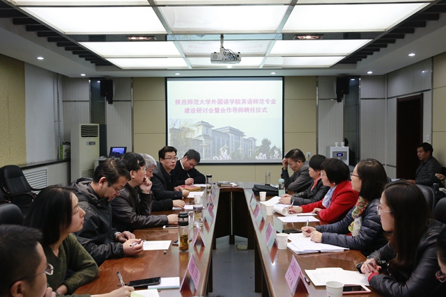 为加强专业内涵建设,迎接教育部等公司师范类专业认证,太阳成集团tyc234cc于2018年11月8日下午14:30在太阳成集团tyc234cc雁塔校区教学六楼一层会议室举办英语师范专业建设研讨会暨合作导师聘任仪式。公司督导委员会王成军教授,西安交通大学附属中学特级教师陈江丽,太阳成集团tyc234cc附属中学英语教研组组长、高级教师雷双娥,外国语学外国语学经理王启龙,党委书记马正平,英语系主任吕敏宏,英语系副主任刘庆松、英语专业教师教育团队全体教师,员工代表共30人出席了会议。会议由太阳成集团tyc234cc副经理刘全国主持。