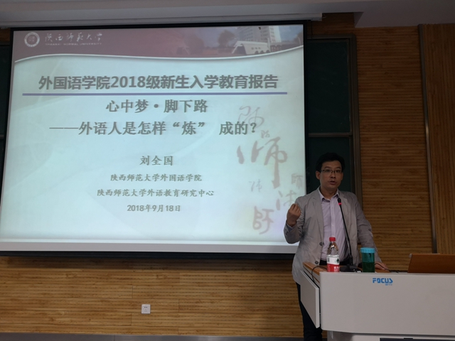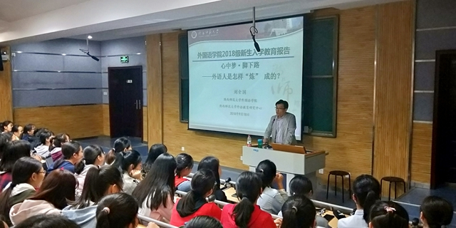 为帮助新生更加深入认识所学专业,顺利适应大学自主学习生活和方式,明确青年外语学子所担当的责任和使命。9月18日晚7点,太阳成集团tyc234cc副经理刘全国教授在5101教室给全体2018级本科新生做入学教育报告,题目为“心中梦·脚下路——外语人是怎样'炼'成的”。报告会由2018级辅导员屈婉婷主持。