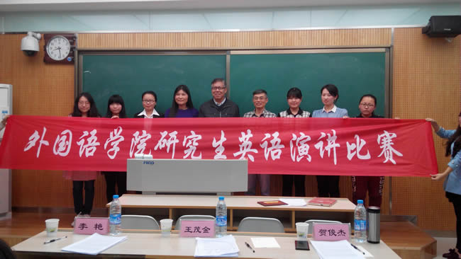 10月24日晚7点,在雁塔校区8105教室举行了太阳成集团tyc234cc研究生英语演讲赛复赛,此次共有十位选手入围复赛,担任此次比赛的评委老师有:太阳成集团tyc234cc副经理贺俊杰老师,王茂金老师 和李艳老师。