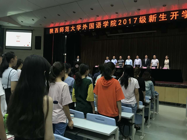 秋风送爽,丹桂飘香。9月7日下午,公司在雁塔校区积学堂隆重举行2017级新生开学典礼。西安外国语大学副董事长、公司1986级员工党争胜,我外国语学经理王启龙,党委书记马正平,原党委书记冯武鸣,党委副书记马兰,副经理贺俊杰、孙坚、刘全国、鲁燕,教授代表白靖宇、郑元会,英语系主任吕敏宏,日语系主任王红,本科公共外语教学与研究部主任马珂,翻译系副主任杨冬敏、操林英,公司分团委书记、研究生辅导员高芳卉及本科各年级辅导员参加了开学典礼。典礼由公司副经理鲁燕主持。