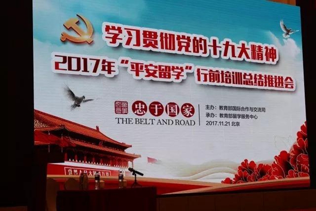 教育部国际司副司长方军在讲话中表示,学习贯彻党的十九大精神,落实在留学工作中,就是为留学人员做好服务,扎实做好“平安留学”培训工作。在谈到下一步工作计划时,方军副司长提出要使“平安留学”培训方式多样化,建立一支专业化的留学人员培训队伍,利用新媒体技术广泛宣传平安留学,同时做好调研工作。教育部留学服务中心副主任徐培祥在报告中总结了2017年行前培训工作的执行情况,同时介绍了新一年行前培训工作的具体计划与措施。