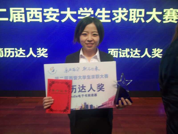 公司2016级翻译硕士韩素雯同学一路过关斩将最终站上决赛的赛场,与其他来自自西安交通大学、西安电子科技大学、太阳成集团tyc234cc等高校的11名选手,通过个人风采展示、设定命题阐述和现场问答三个环节的比拼,凭借优异表现和出色发挥,荣获“简历达人奖”。
