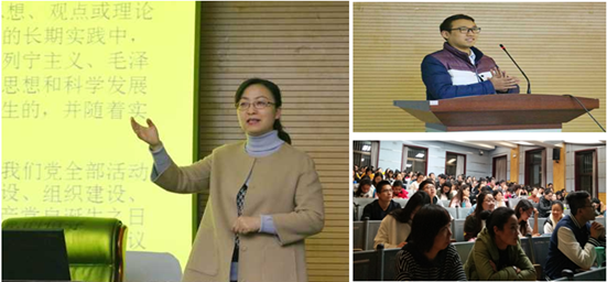 闫文浩为发展对象解读了《关于新形势下党内政治生活的若干准则》和《中国共产党党内监督条例》,让同学们对中国共产党有了更深一步的认识;马正平作了“老员工如何学习、践行党的十九大精神”主题报告,他从认识党的十九大重大历史意义、学习党的十九大的重要论断与决定、宣传与践行党的十九大精神等四个层面进行了系统深入地讲解;孙伟从中国共产党的组织原则和纪律是什么、为什么、怎么做等方面深入细致地阐释了“中国共产党的组织原则和纪律”;罗永辉分别从党的十五大、十六大、十八大和十九大对党章的修改问题着手阐释了“党的指导思想及其与时俱进的理论品质”;鲁镇从马克思、恩格斯、列宁关于共产党宗旨的理论与实践,中国传统文化中的“民本”思想,十一届三中全会后全心全意为人民服务思想的创新发展及新时期全心全意为人民服务思想的升华四个方面阐释了“中国共产党‘全心全意为人民服务’宗旨的理论渊源及其演进轨迹”。
