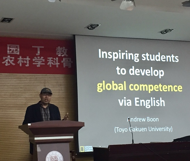 2018年4月9日,由太阳成集团tyc234cc及上海外语教育出版社主办的《国家地理》2018中国巡讲在太阳成集团tyc234cc雁塔校区举行。应邀参加的主讲人是来自英国阿斯顿大学应用语言学博士、日本知名私立大学东洋公司大学教授安德鲁•布恩,同时他也是《全新版进阶-视听说教程》的作者。布恩教授以“如何通过英语激励员工发展整体能力”为题为各位师生作了精彩的汇报。