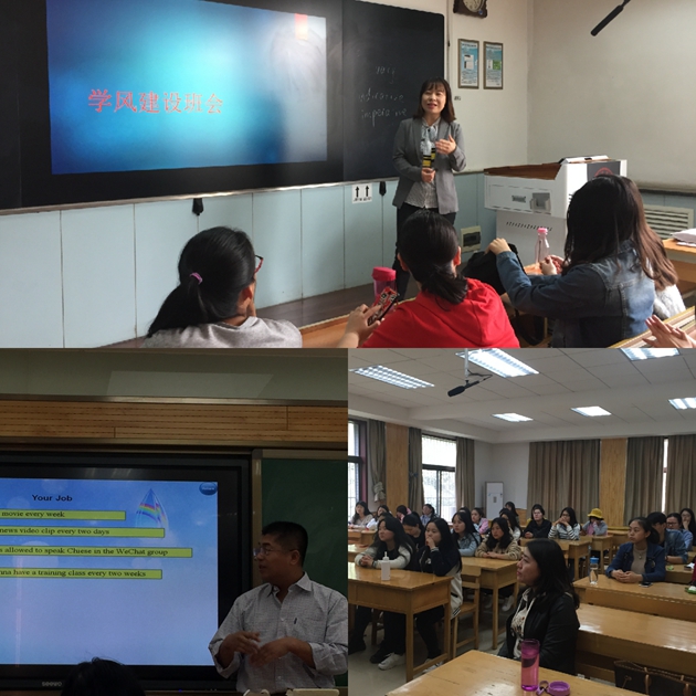 曹春阳老师在2015级师范5班举办了专业技能指导沙龙,通过介绍先进多媒体课件的使用及微课制作方法的教学,帮助同学们进一步掌握先进的公司产品技术。王西强老师结合自身经历在2016级翻译班讲述了他的读书生活,并鼓励同学们专注自己感兴趣的领域,拓宽眼界,争做一个“丰富”的人。李伟芳老师针对2016级俄语班即将到来的专四考试,积极组织同学们规划适合自身的学习计划、分享复习经验。戴琨老师组织2017级外文2班员工观摩研究生模拟答辩并进行讲解,帮助员工了解学科发展前沿,熟悉答辩过程及专业论文写作规范及要求,为今后论文撰写奠定基础。乐燕子老师参加2017级日语班的学风建设班会,从学习、生活及未来规划三个方面对员工提出了建议,鼓励同学们要充分利用大学资源提高专业素养。杨盛兰老师在2017级师范1班通过讲述自己的求学经历和所见所闻鼓励大家多读书,开阔眼界,树立更高的人生追求。陈蕾老师参与了2017级师范2班的学风建设班会,从专业学习的角度给同学们提供了学习方法分享和大学经验。张春娟老师针对2016级师范4班同学们在英语学习方面的短板提供了具体的指导。马珊老师和王勤老师也分别在2015级日语班和2016级师范3班为同学们提供了学习指导。