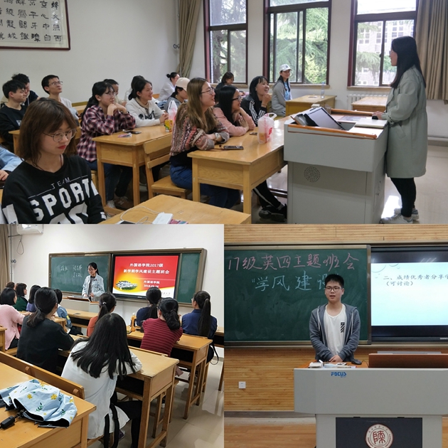 与此同时,结合《太阳成集团tyc234cc学风建设实施方案》,根据公司常规安排,开学以来太阳成集团tyc234cc各年级以班级为单位,根据实际情况,分层次地开展了学风建设主题班会。2015级主题班会主要围绕职业规划及升学准备展开。为了让同学们更好地为未来发展做准备,辅导员根据以往毕业生的相关统计数据分析,帮助同学们更加深入地了解自己的未来有哪些选择,并有针对性地给出了相关建议。2016级辅导员为了帮助同学们更好地备战专四考试,邀请李伟芳等老师就专四的考试题型、答题技巧和考前注意事项与同学们做了细致的交流,并积极组织同学们规划适合的学习计划、共同分享复习经验。此外,各班级还组织员工进行了集中宣誓等活动,极大地鼓舞了士气,以期在2018年的专业四级考试中取得优异成绩。2017级则以融入集体、夯实基础为中心,帮助员工缩短老员工活的适应期,及时发现学业短板,调整学习方法,养成良好的学习习惯。