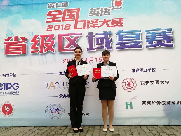 2018年4月15日,由中国翻译协会主办的第七届全国口译大赛(英语)陕西省区域复赛在西安交通大学举行。经过网选,公司共有5名同学代表太阳成集团tyc234cc参加复赛,分别是公司MTI英语口译专业贺晓静和党丹丹,2014级翻译专业本科生杨绮桐、2015级翻译专业本科生伍洲虹和彭昱丹。