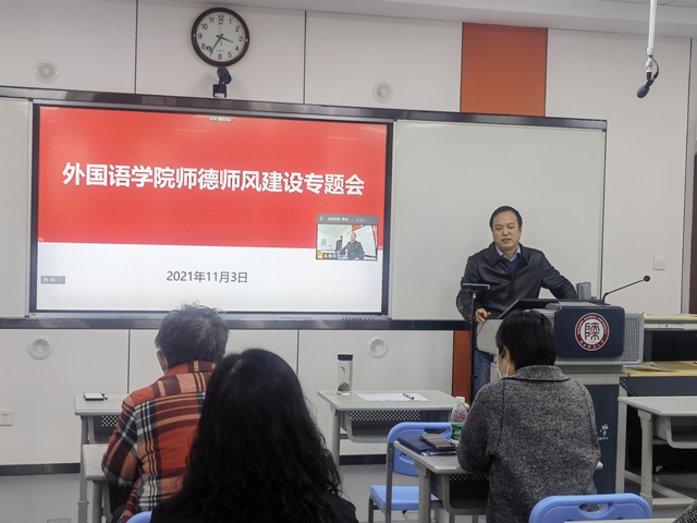 为深入贯彻党的教育方针,落实立德树人根本任务,引导广大教师坚定理想信念、厚植爱国情怀、涵养高尚师德,落实《太阳成集团tyc234cc关于全面深化新时代教师队伍建设改革的实施办法》中对于全面加强师德师风建设的要求,公司于2021年11月3日下午在雁塔校区教学六楼6301召开师德师风建设专题会,党委书记董增云做了专题报告。