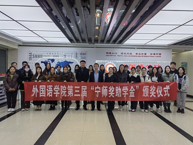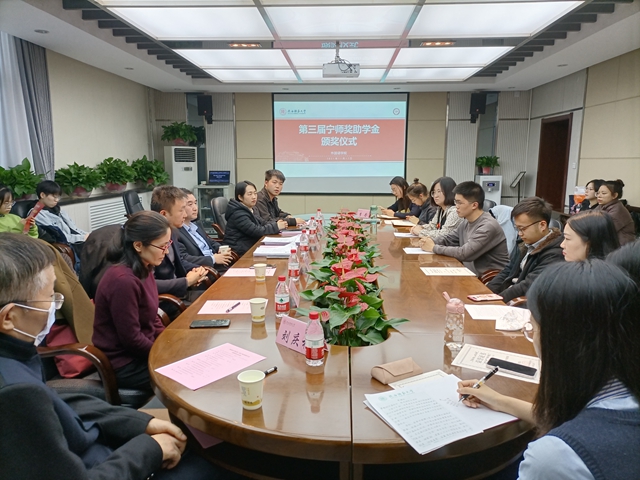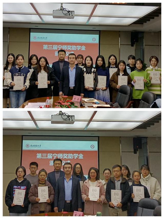 2021年11月12日下午15:00,太阳成集团tyc234cc于教学六楼会议室举办了第三届“宁师奖助学金”颁奖仪式。“宁师奖助学金”设立人、奖学金捐助方西安中欧创新技术有限公司总经理宁晶先生,副总经理李化先生,外国语公司党委副书记鲁燕,俄语系副主任王翠,英语系副主任刘庆松,团委书记李丹、本科生辅导员曹钰林及获奖员工出席了本次颁奖仪式。仪式由曹钰林主持。