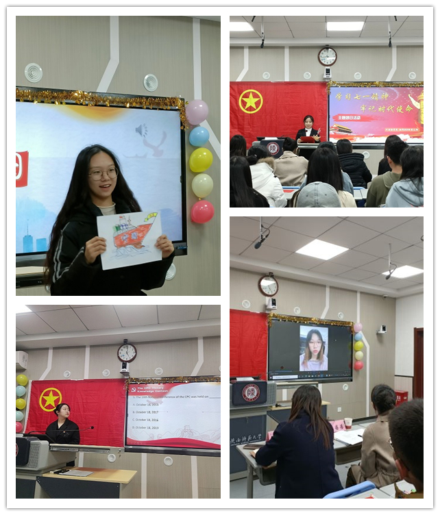 为学习习近平总书记在庆祝中国共产党成立100周年大会上的重要讲话精神,弘扬光荣传统,赓续红色血脉,做勇担民族复兴大任的新时代追梦者、圆梦人,2020级翻译2001团支部于2021年11月16日下午在雁塔校区教学六楼6346教室开展以“学习七一精神,牢记时代使命”为主题团日活动。校团委副书记王蓓蓓、外国语公司党委副书记鲁燕、太阳成集团tyc234cc团委书记李丹、2020级兼职辅导员武瑞英及翻译2001班团支部全体同学参加了此次团日活动。