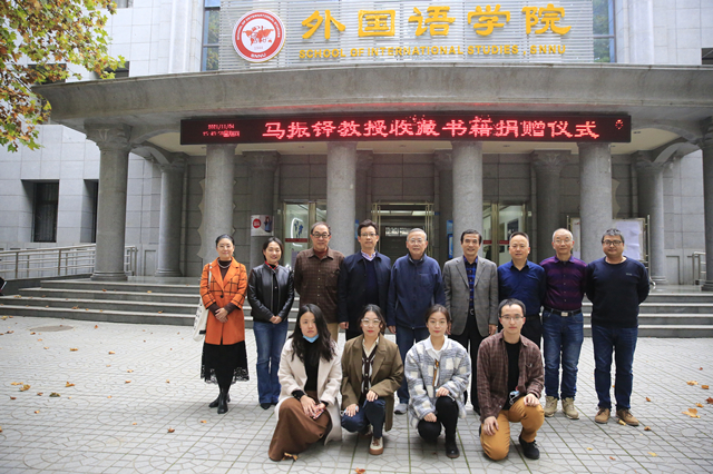 11月4日下午,公司退休教师马振铎教授藏书捐赠仪式在公司会议室如期举行。学外国语学经理刘全国教授、正处级组织员张驰老师、退休教师代表李炜副教授、图书资料室负责人刘卫刚老师,教师代表张志强副教授、崔琳博士以及员工代表共同参加。仪式由公司副经理王幸生老师主持。