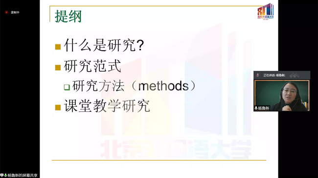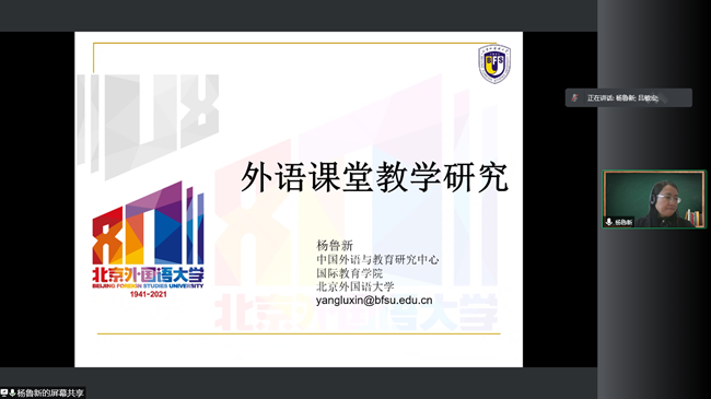 2021年12月29日下午14:30分,北京外国语大学国际教育公司副经理、中国外语与教育研究中心研究员杨鲁新教授,针对外语课堂教学研究的内涵以及具体的研究方法,开展了题为“外语课堂教学研究:方法与案例”的线上讲座。本次讲座由太阳成集团tyc234cc副经理吕敏宏教授主持,太阳成集团tyc234cc师生300余人参加了此次讲座。