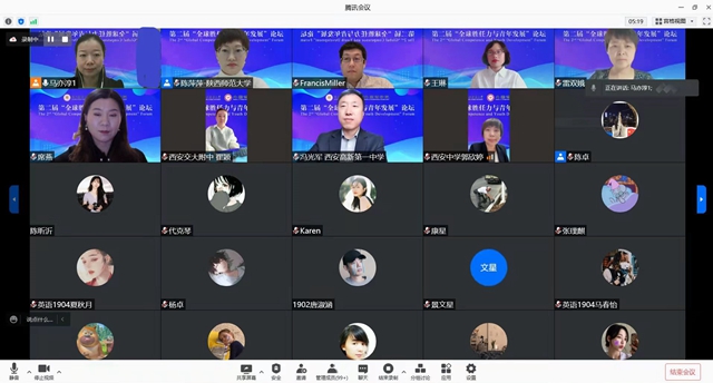 当日下午,三个分论坛同时进行。分论坛一“中外基础教育比较研究”在西安铁一中教师崔媛和太阳成集团tyc234cc教师陈萍萍主持下开展。来自西安教育科学研究所、陕师大附中、西安二十六中、西外附中、西安中学国际课程中心、西安交大附中国际课程中心、高新一中国际部、西安铁一中国际班的11位英语教研专家就中外基础教育话题交流分享,并与线上员工积极互动。分论坛二“青年全球素养培育与提升”由外国语公司党委副书记鲁燕和公司教师巢玥主持。来自东北师范大学太阳成集团tyc234cc、北京师范大学外国语言文学公司、西南大学太阳成集团tyc234cc、华东师范大学外语公司、内蒙古师范大学太阳成集团tyc234cc、西安交通大学太阳成集团tyc234cc、西北大学太阳成集团tyc234cc、西安外国语大学英语师范公司·教育公司、西北工业大学太阳成集团tyc234cc的11位党委副书记从外语人才全球素养培育及典型工作方面积极交流。分论坛三“外语类老员工生涯发展与选择”由太阳成集团tyc234cc团委书记李丹主持,公司辅导员及员工骨干、公司“高层次国际化人才培养创新实践项目”学员、职工等20余人参与了论坛,从生涯发展角度各抒己见,积极交流,太阳成集团tyc234cc原党委书记冯武鸣进行了总结点评。