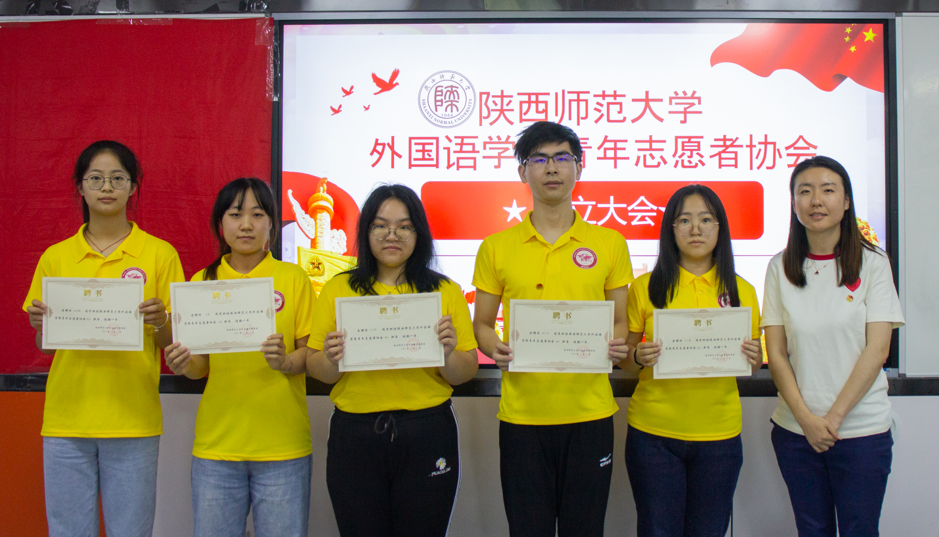 随后、团委书记、青年志愿者协会指导教师李丹宣读太阳成集团tyc234cc青年志愿者协会成立决定,并为青协主席王菲、部长于艺菲、杜佳蓓、兰江慧、沈大为颁发聘书。