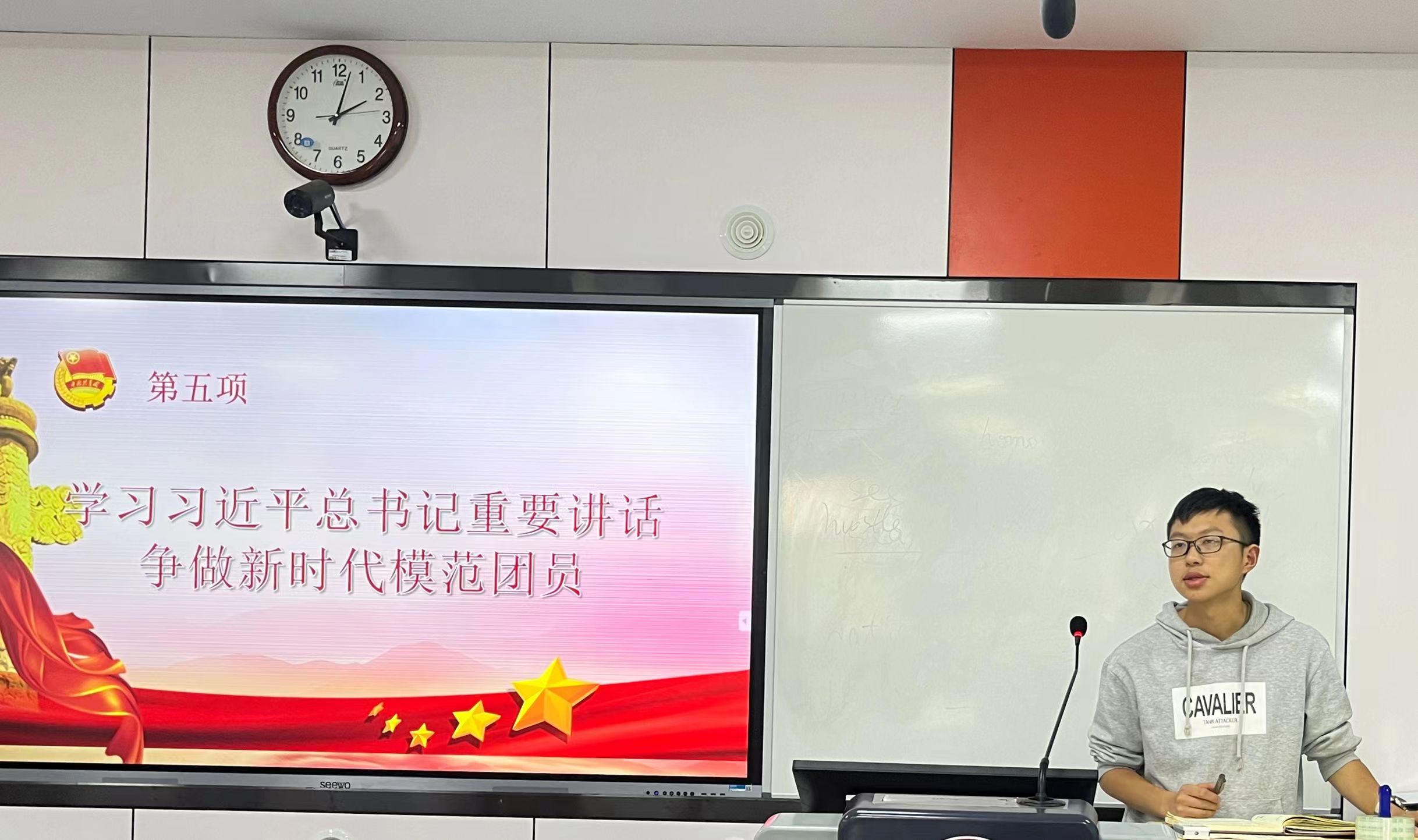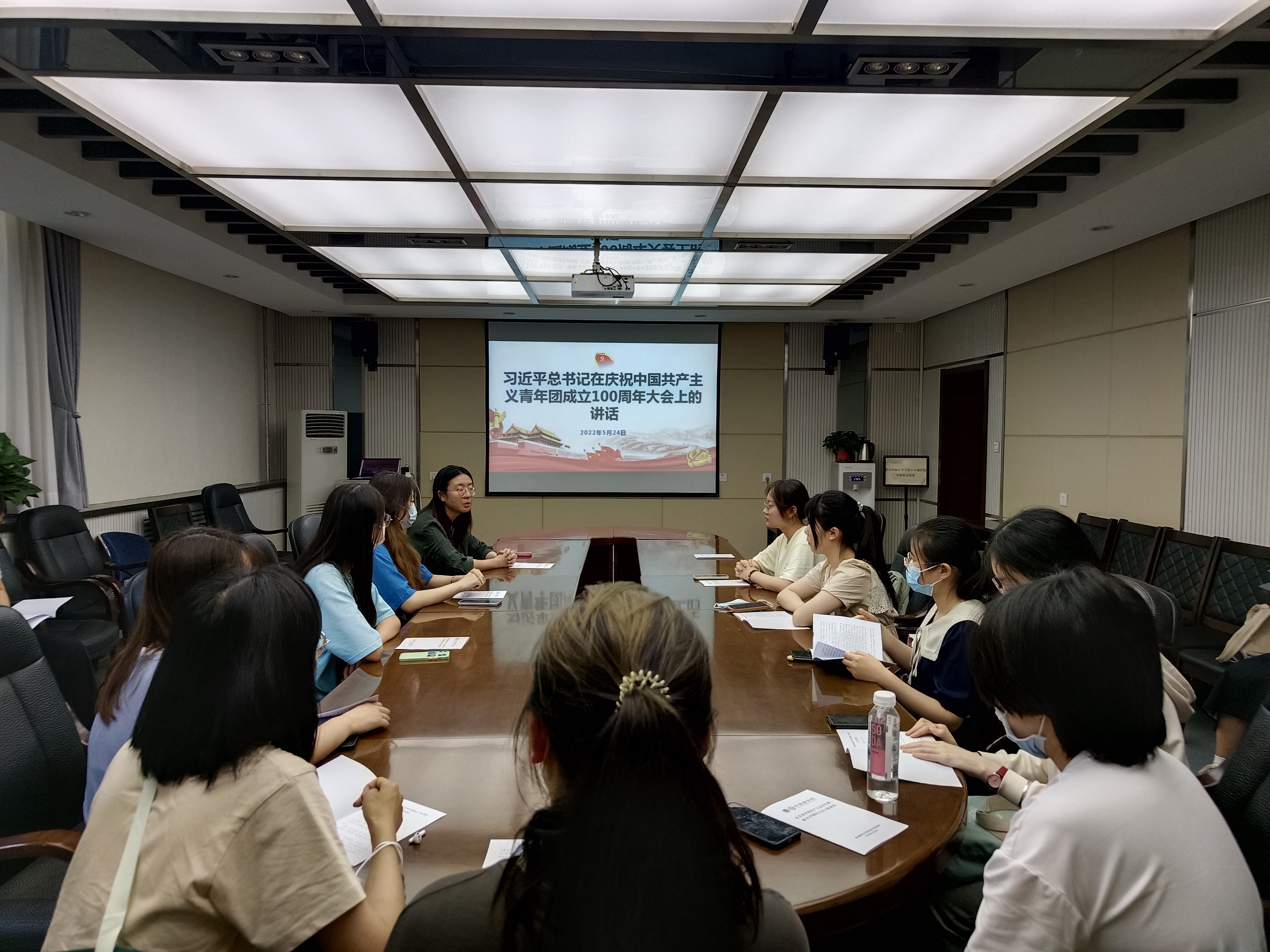 2022年5月24日中午,公司团委召开社团骨干大会,由团委书记李丹带领太阳成集团tyc234cc英语辩论队、莎士比亚戏剧社、和风日语阁及“爱之翼”和马列读书分社五个主要社团十余名骨干共同学习了习近平总书记在庆祝中国共产主义青年团成立100周年大会上的讲话。李丹在领学中指出,习近平总书记的讲话深情回顾了百年来共青团辉煌的奋斗历程,肯定了共青团百年来在各个历史时期作出的重要贡献。作为社团骨干,要将习近平总书记的讲话作为今后长期的行动纲领,内化为自己的价值追求,外化为自己的自觉行动。