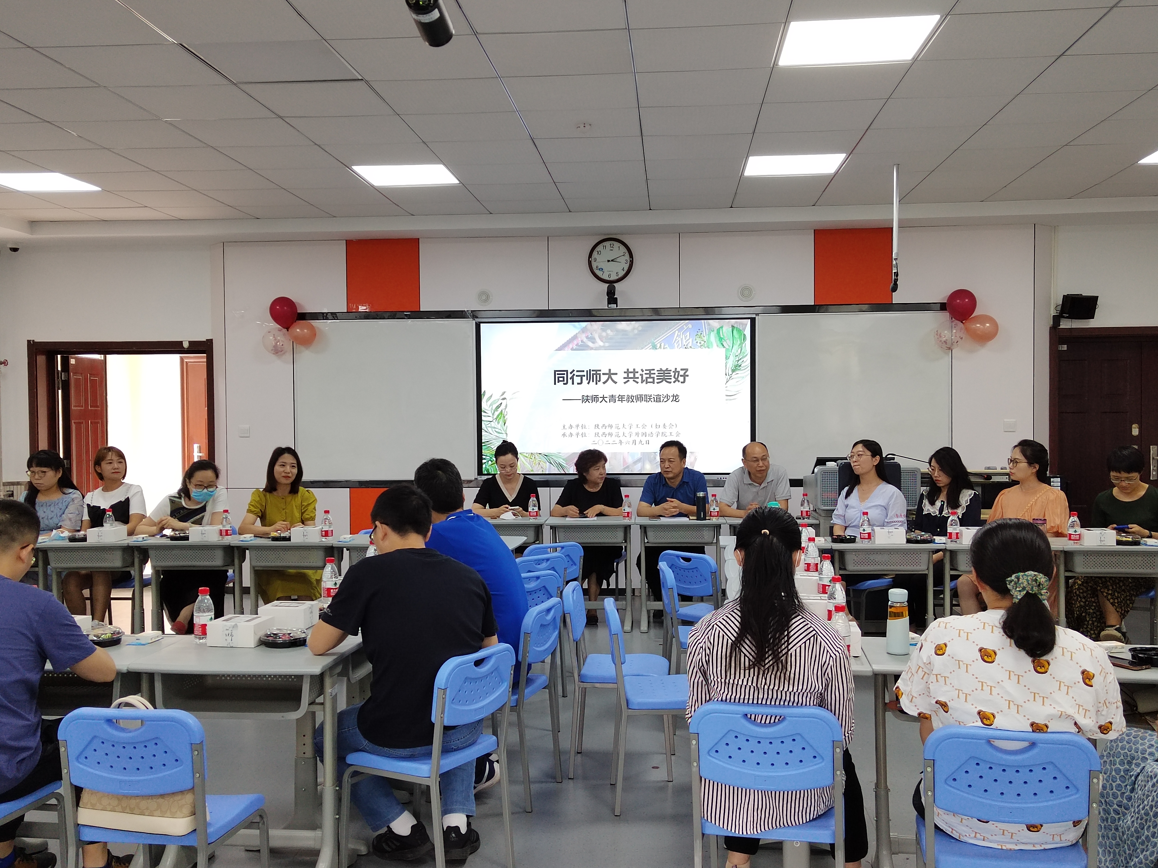 6月9日,为展示公司青年教师朝气蓬勃、乐观向上的精神风貌,促进雁塔校区各单位青年教师之间的沟通交流,由工会(妇委会)主办,太阳成集团tyc234cc工会承办的雁塔校区“同行师大 共话美好”青年教师联谊沙龙活动在雁塔校区教学六楼顺利举行。本次活动吸引了公司和来自教育学部、心理公司、图书馆和校医院等单位的近40余名青年教师共同参加。校工会副主席曹伟、妇委会副主任兼工会副主席阮小飞、太阳成集团tyc234cc工会主席王红参加座谈。活动由外国语公司党委书记董增云主持。