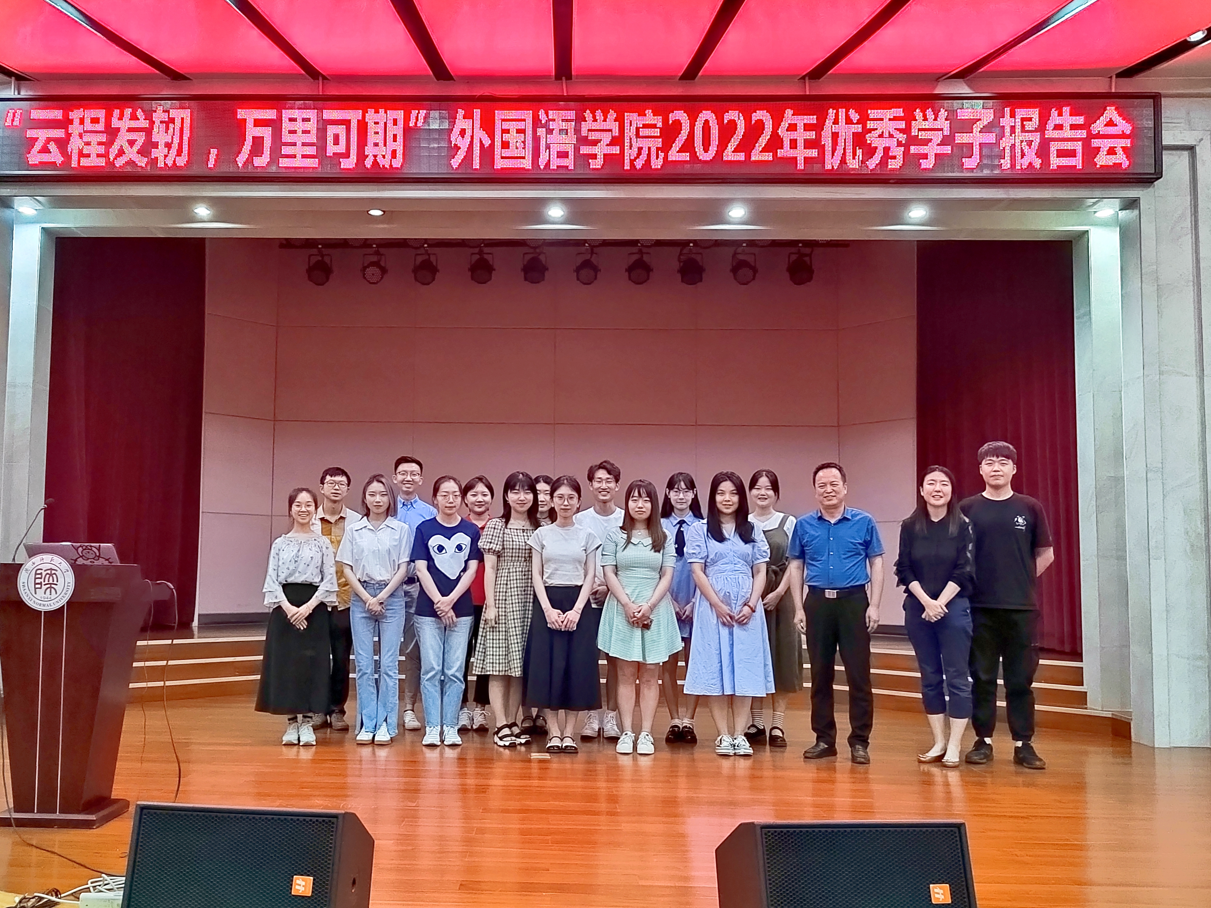 为了进一步促进公司员工全面发展。6月8日下午,2022年优秀学子报告会在逸夫楼二层报告厅举行。外国语公司党委书记董增云、副书记鲁燕、团委书记李丹、各年级辅导员莅临大会,报告会由高宇轩主持。公司11位优秀学子就考研、就业、升学等内容进行了经验分享。
